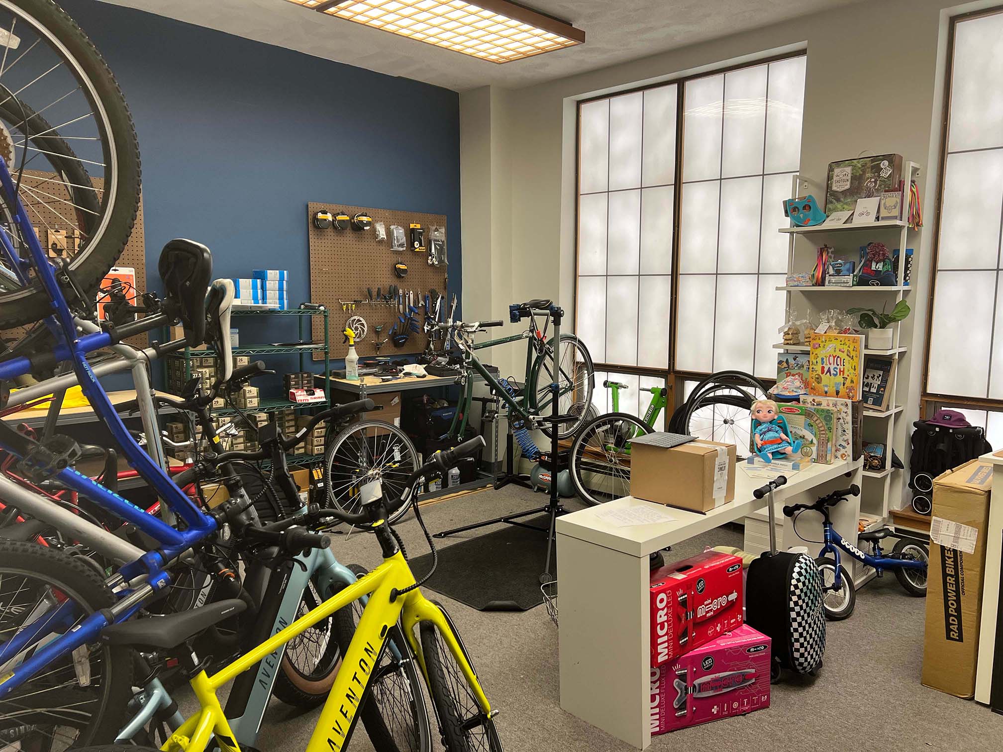 In 2022, two Melrose moms were in the process of founding their own, sustainability-focused businesses. Elaina Rivais, inspired by her passion for reducing waste and enabling people to repair and reuse things they already own, created Lend and Mend, an object lending library and repair business. And Kara wanted to create a family-friendly, inclusive bike shop where people could come to get their bikes serviced and go right back to riding - an idea that turned into the Ride Cafe.