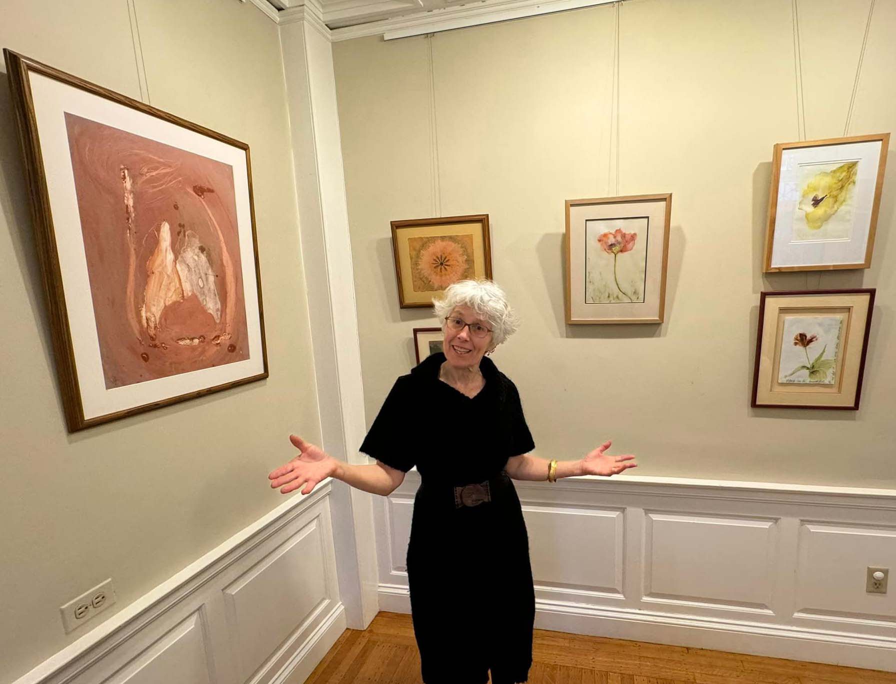 Sophie Glikson Cahen and some of her artwork (Spirit Light is on the far left)