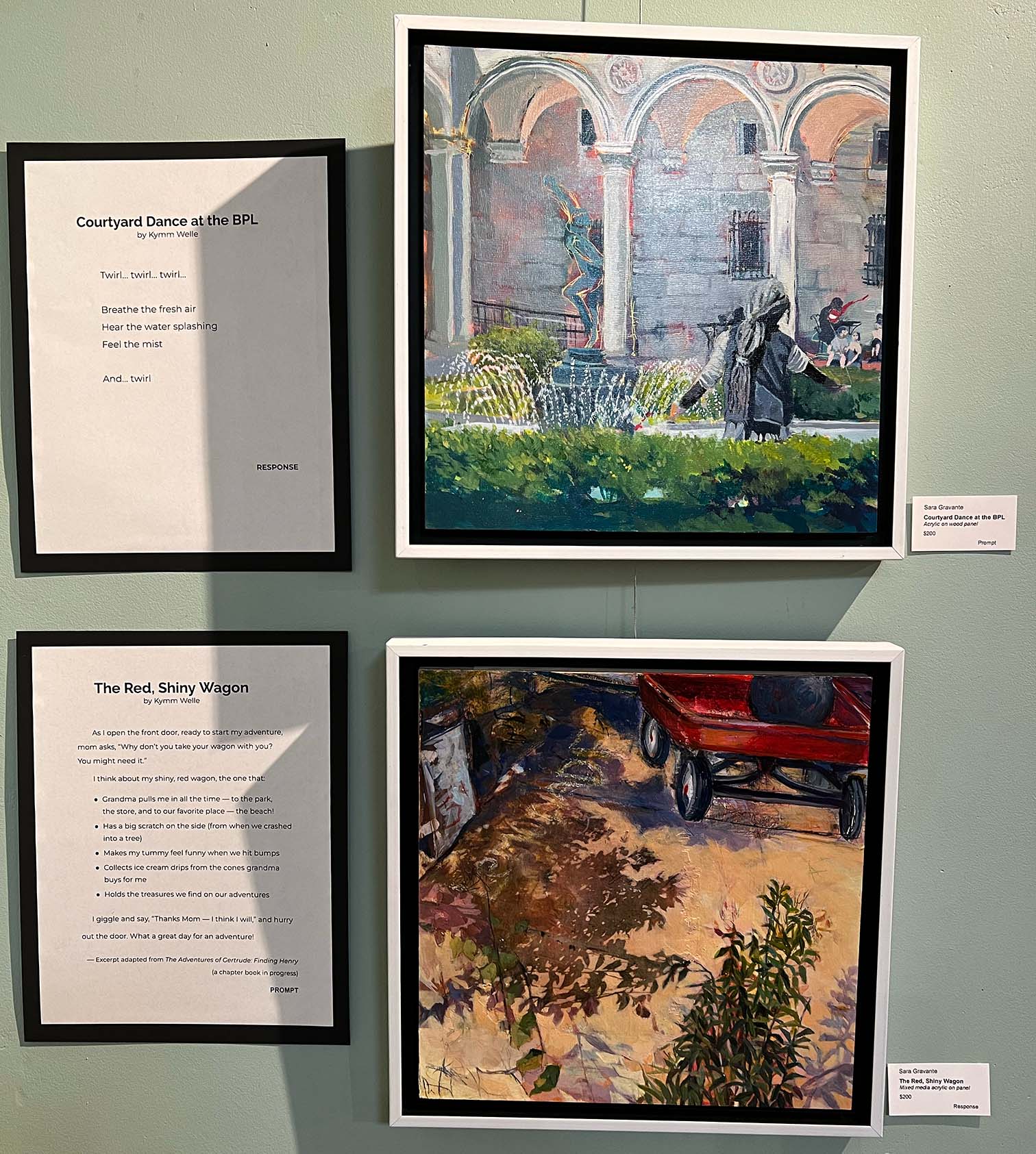 The inspiration for the show, explained Gallery Coordinator Sara Gravante, was the fact that FYACS houses not only artists’ studios but also a writers’ studio, providing a natural group of artists and writers to draw from. “It’s nice,” said Gravante, “because the two groups don’t often mingle. It’s a shared space, but we often work in isolation.”