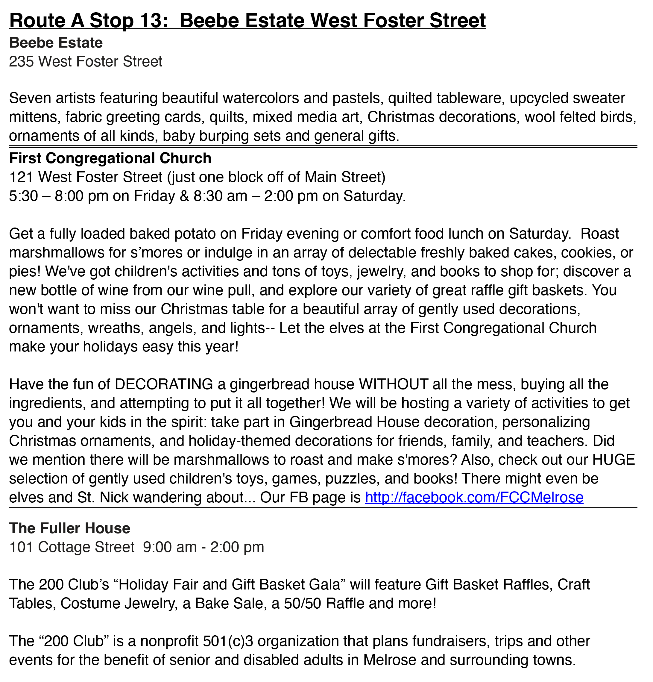 Read more about Home for the Holidays at the Melrose Chamber of Commerce page.