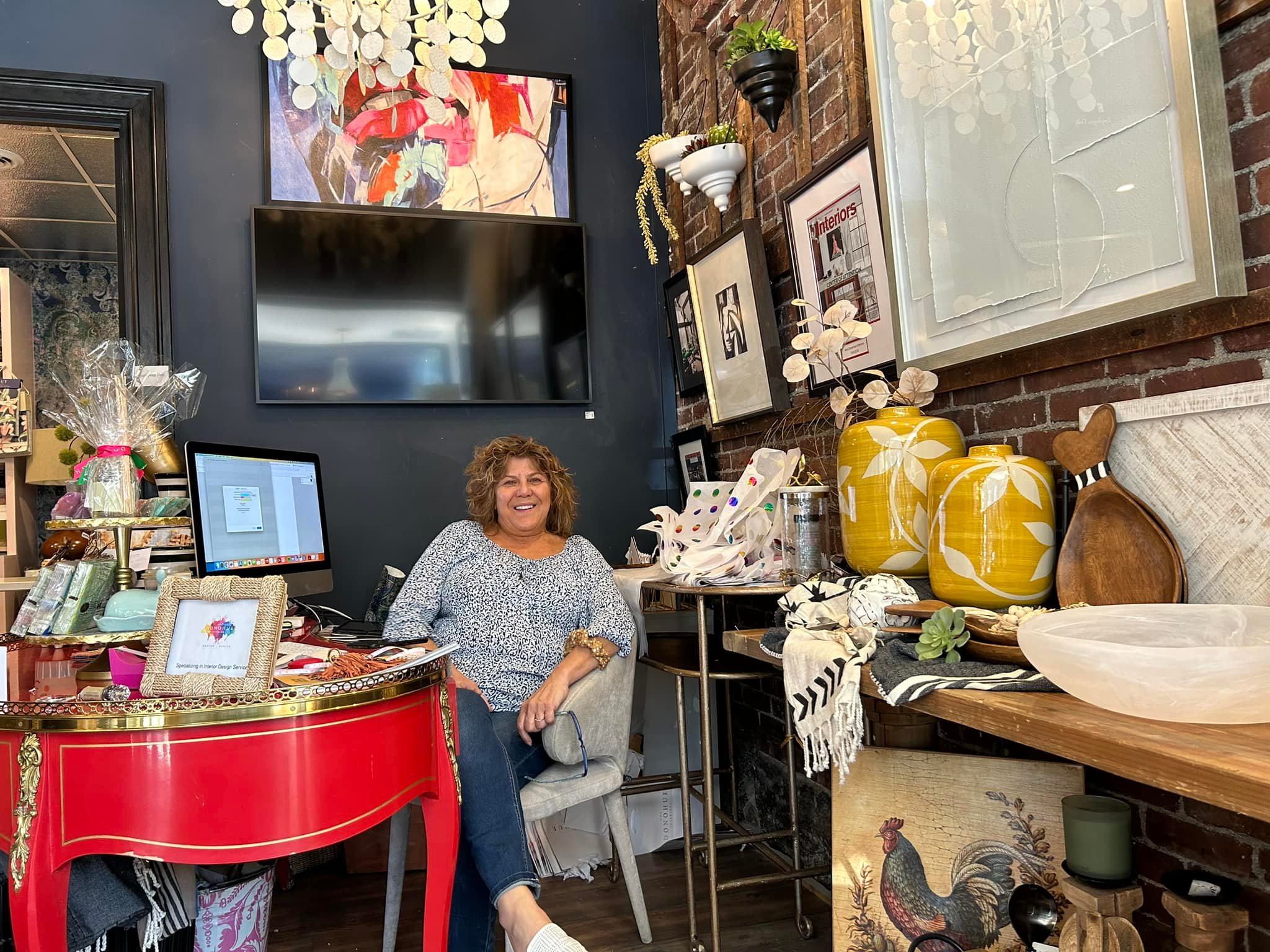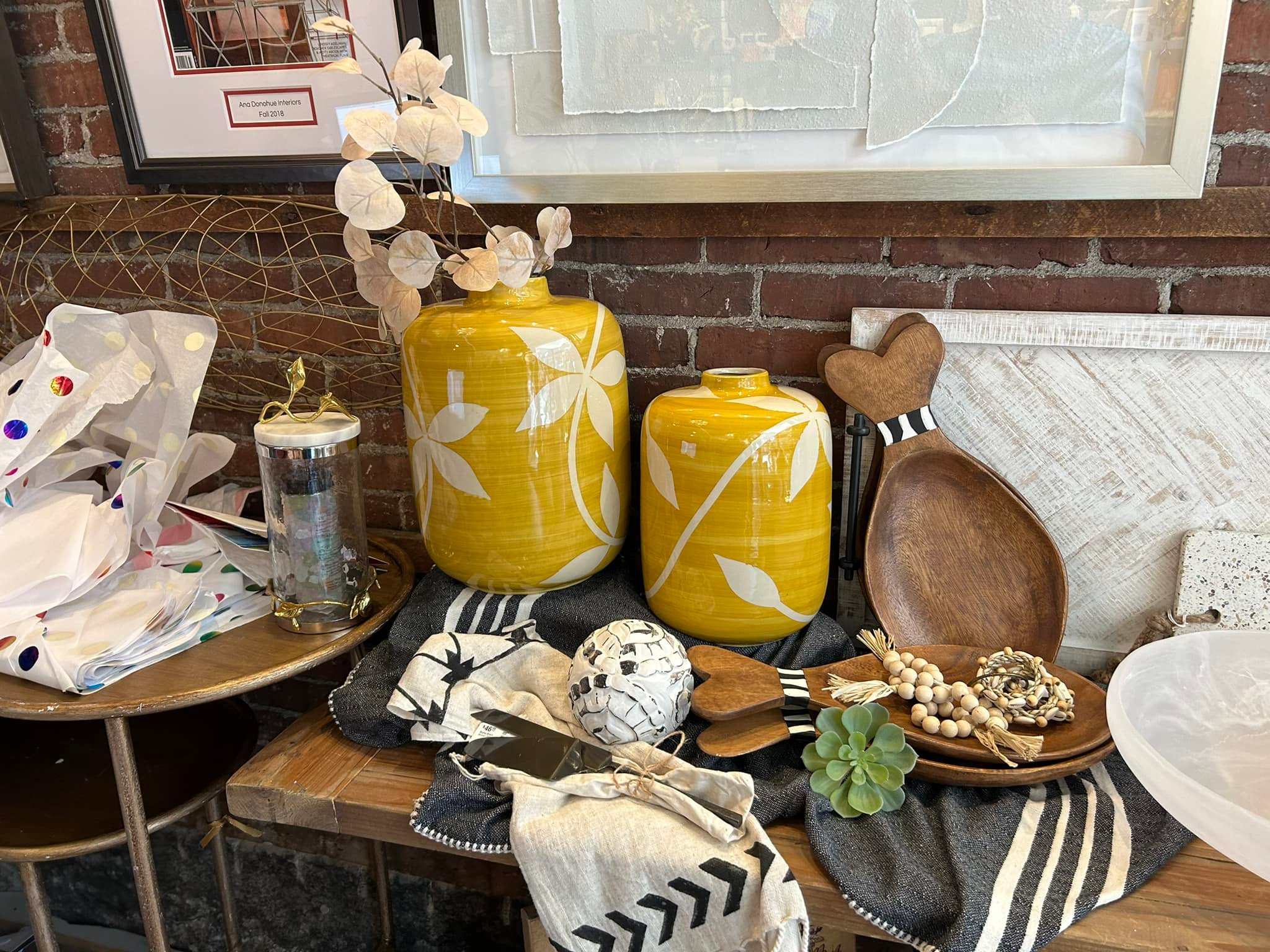 I had strolled by Ana Donahue Interiors store on Main Street multiple times but this trip I crossed the threshold. I was greeted by the lovely Lillian Francescucci Di Maria. Lillian curates the colorful and eclectic storefront. The store is part gift shop and part design studio. It is a feast for the eyes, comfortable and has all price points. Ana has a separate space on West Foster St. for design work.