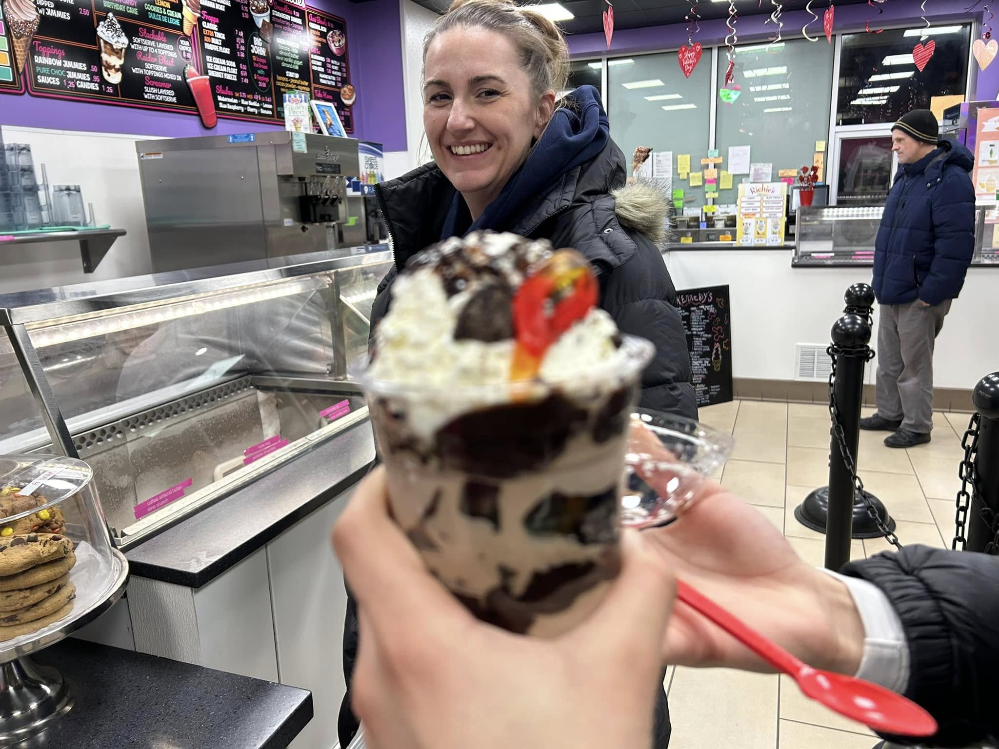 It is freezing outside so what do we do – order ice cream from Kennedy’s ice cream bar in the same parking lot as Whole Foods. Just so you don’t think I am crazy on this frigid night there was a line to order and multiple uber eats or grub hub pickups.