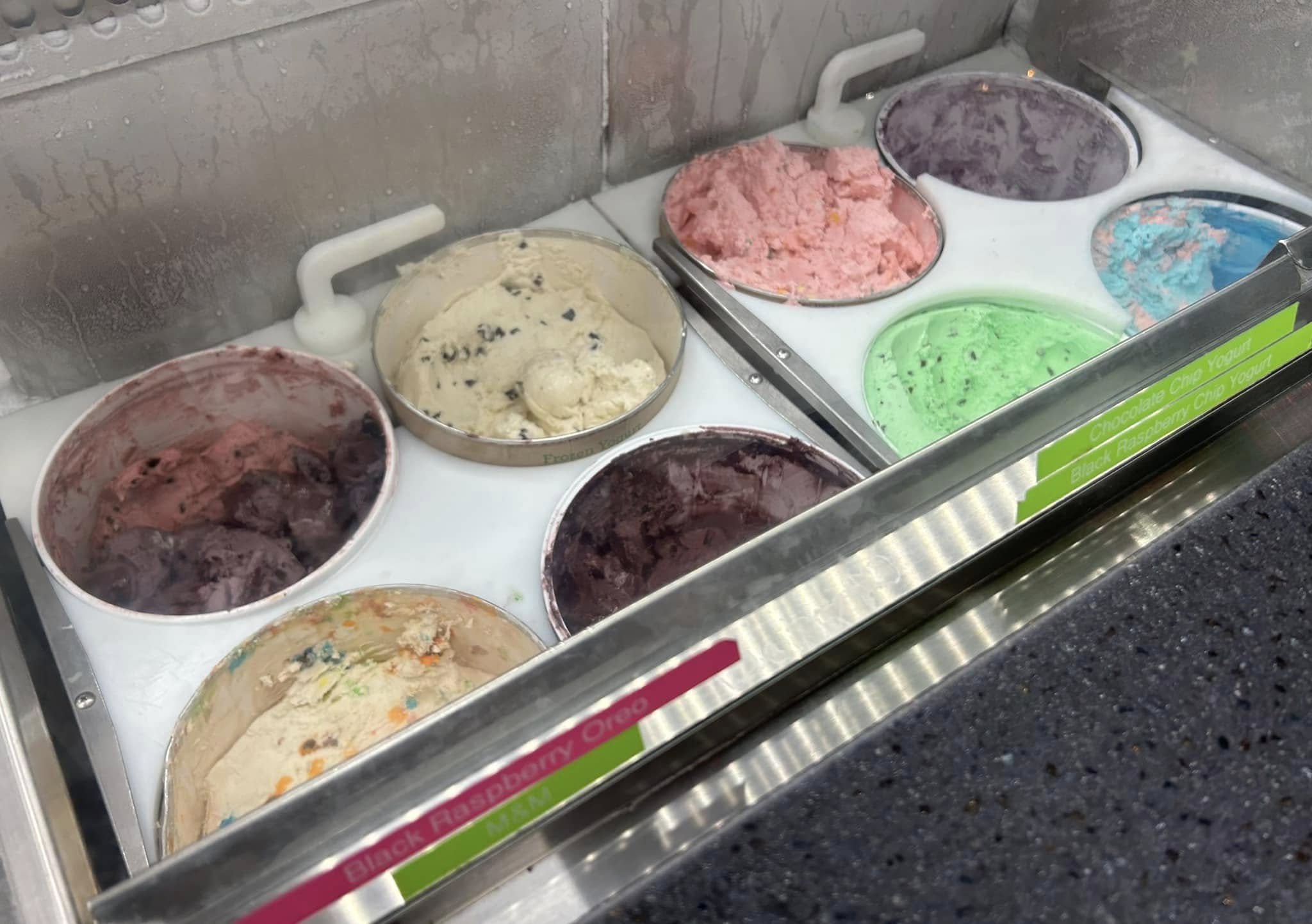 They have hard and soft serve ice-cream, an array of toppings and sizes. The combinations are limitless. Their raspberry lime rickeys are the best around. They offer ice cream cakes.