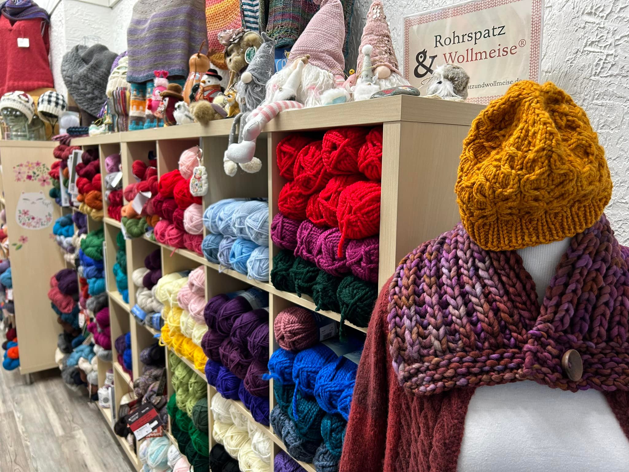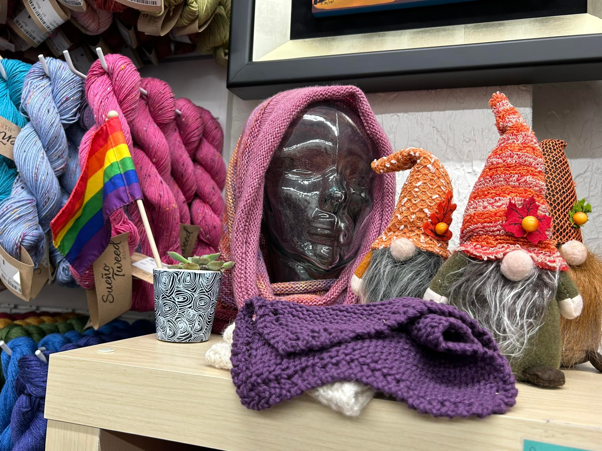 What drew me into the store was a flower box outside the window with no flowers but beautiful knitted hats with a note attached saying “I am not lost, if you are cold please take me”. What a kind and generous gesture. I had to investigate this store. I entered and was surrounded by every color of yarn imaginable. I immediately felt happy. I am not a knitter but could sense the creativity in the room.