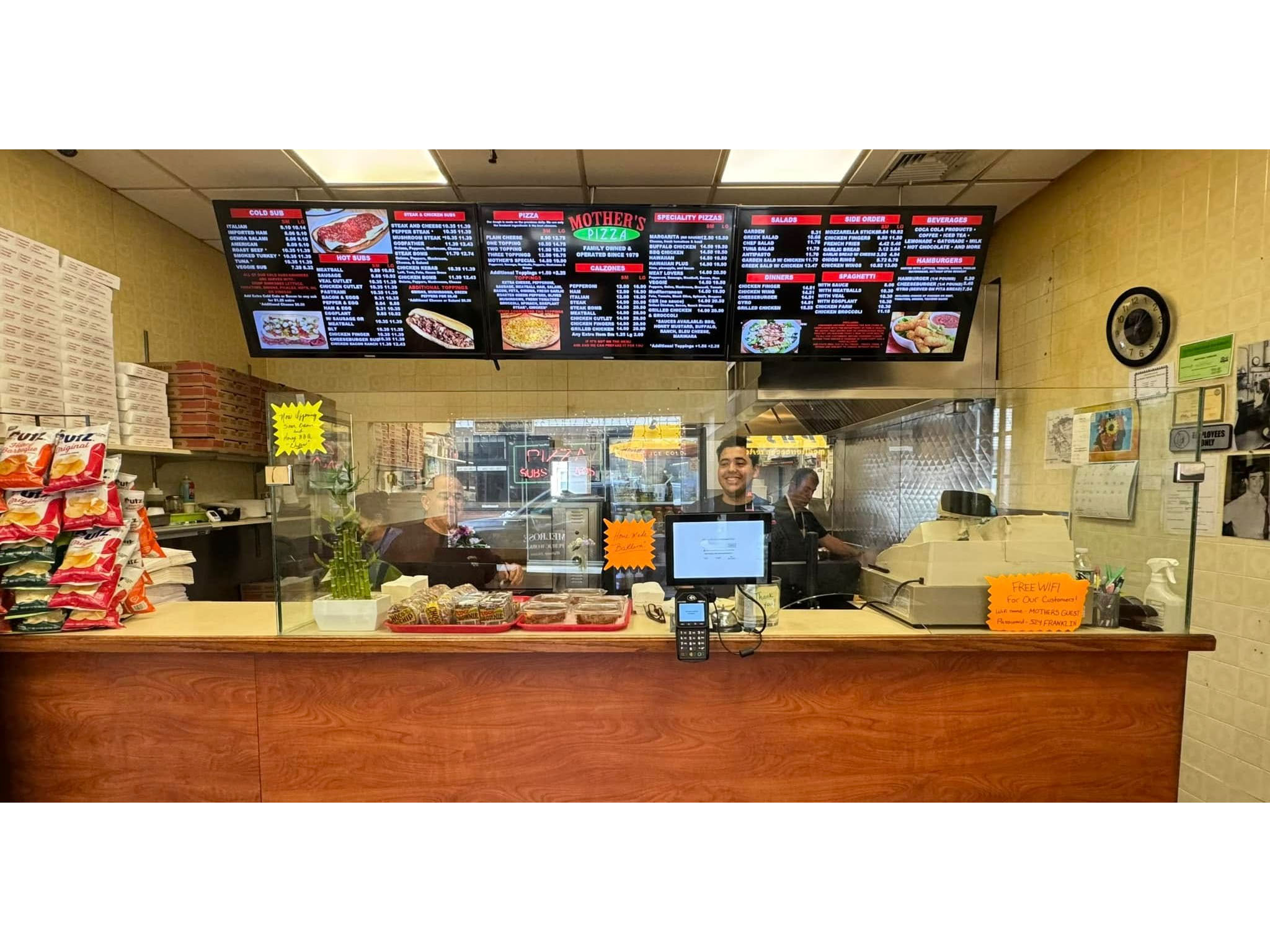 Mother’s Pizza is reasonably priced and offer both take out and dine in.