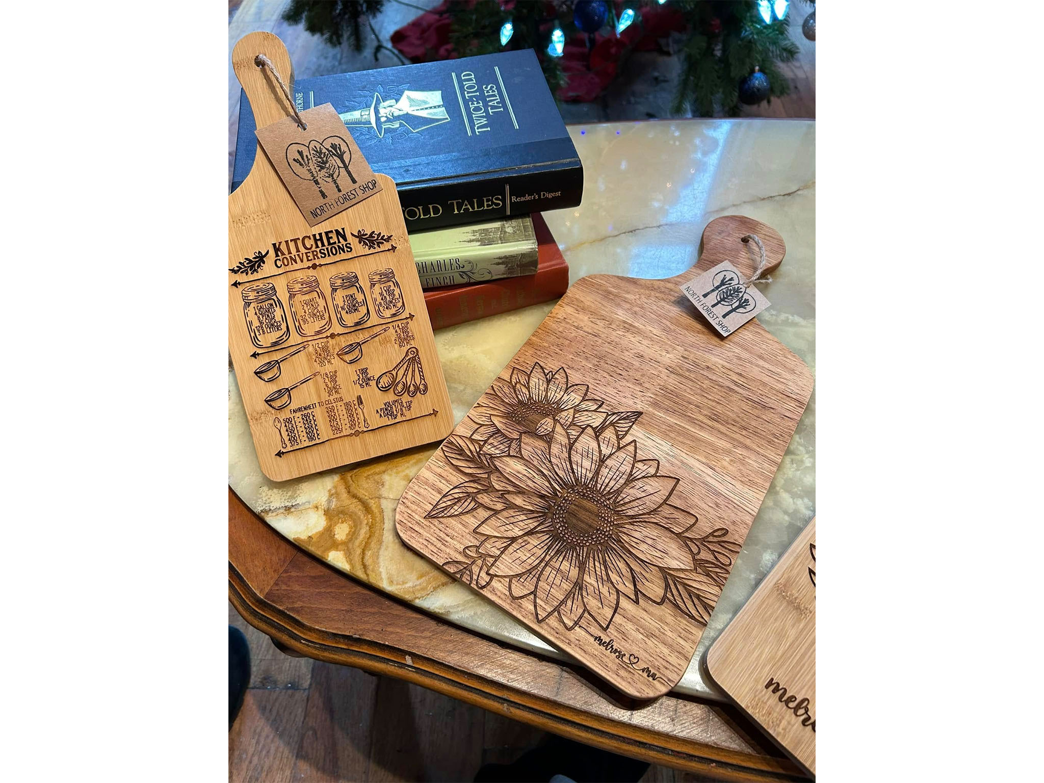 Ellen Azeredo from North Forest Shop, a home-based business in Melrose, will be displaying her beautiful wood products. Ellen specializes in custom keepsakes and laser cut gifts. Including exquisite cutting boards, jewelry, suncatchers, key chains and more.
