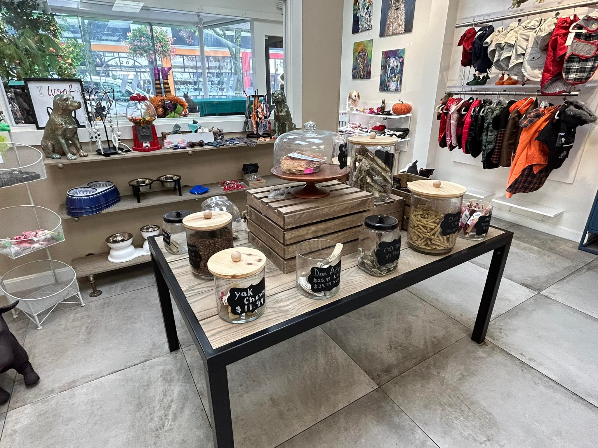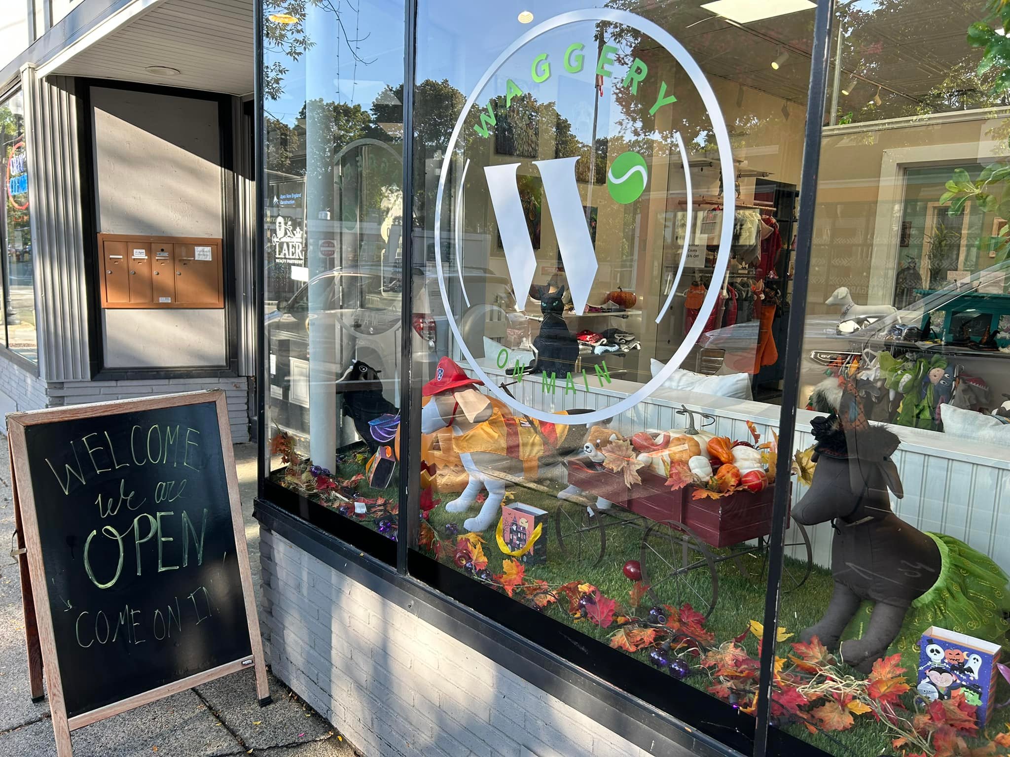 You're in good paws at Waggery on Main. Enjoy their ever-changing, beautiful decorated store windows. They make me smile and almost wish I had a pet again.