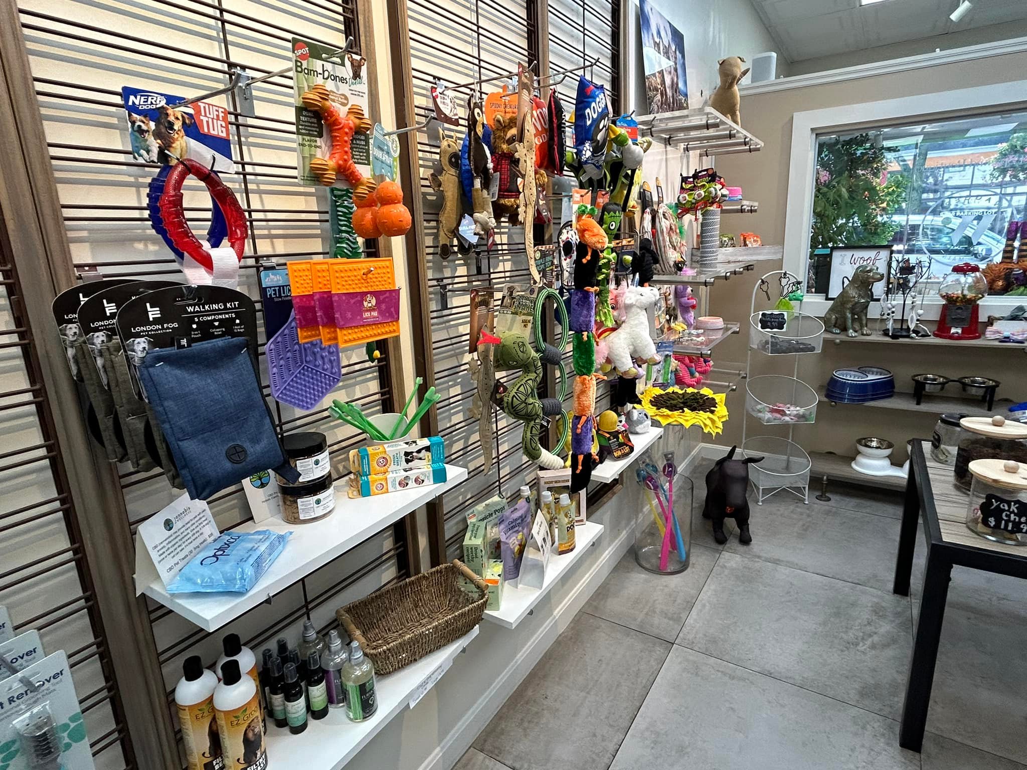 Tammie Colby and Tracie LeBlance have owned the boutique pet store in downtown Melrose, MA for three years. They offer grooming services for dogs and cats. Their retail store is loaded with accessories for your pets: treats, collars, leashes, toys, fashion apparel and accoutrements. Many of their handmade items can be customized just for your special pet! Halloween costumes are plentiful.