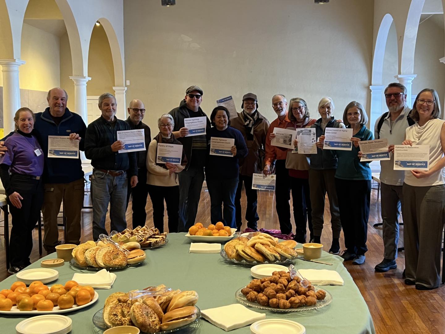 In spite of our largest snowfall so far this year, dozens of Melrosians still turned out for the annual Martin Luther King Jr. Day of Service, hosted at Melrose Unitarian Universalist Church (MUUC) and at several other sites across the city. Participants were able to choose from activities supporting a variety of organizations, including The Milano Center, The Food Drive, Pantry of Hope, Bread of Life, and several Melrose churches.