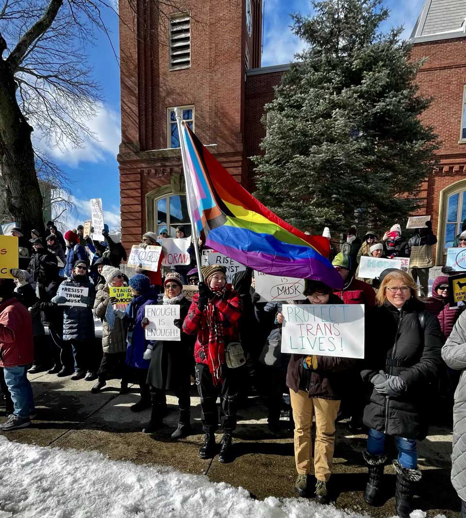 Ellyn Ruthstrom, the Executive Director of SpeakOUT Boston and a Melrose resident, reminded the crowd, “This is such a dangerous time for our trans siblings in our community. They are trying to erase trans people. It’s important for allies to make sure we are visible against these policies.”