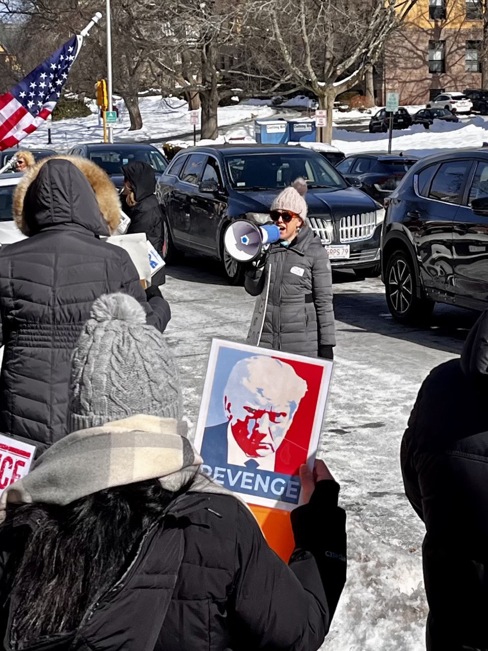 On February 5th, #50501 protests took place across the country, including in downtown Boston. The group describes these protests as “a decentralized rapid response to the anti-democratic and illegal actions of the Trump administration and its plutocratic allies.” Roper and a number of other Melrose residents attended the protest in Boston, and began thinking about organizing something in Melrose for the next planned protest on Presidents’ Day.