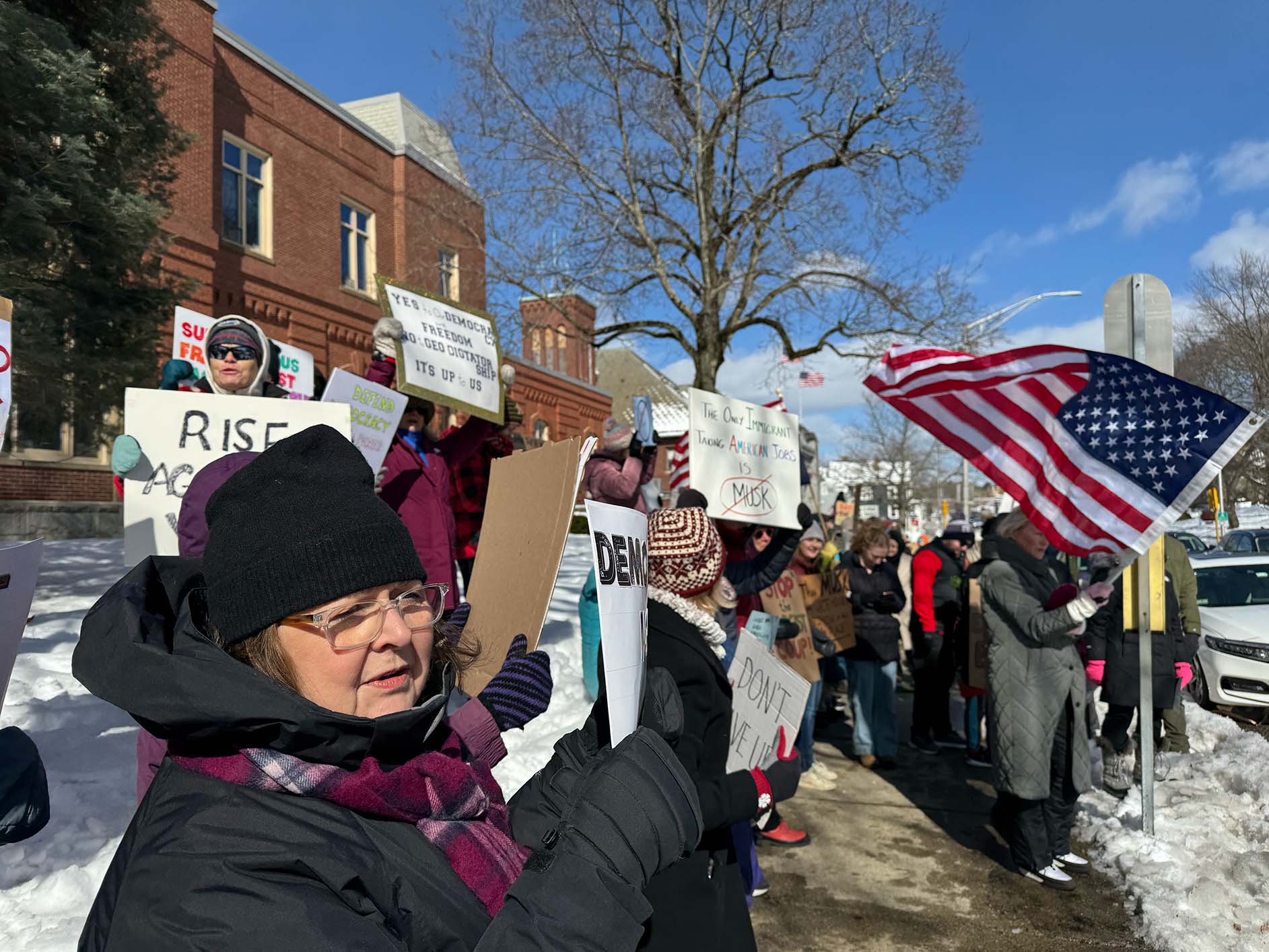 Asked why they had come out in the cold to attend the rally, participants shared that they were concerned about the state of democracy, government programs that are being cut, and the actions of Musk, who some noted had not been elected. Some participants used the words “coup” or “fascism” to describe what they have been seeing in the news.