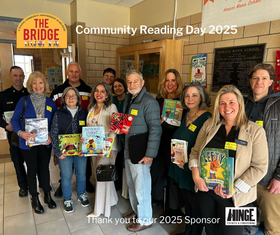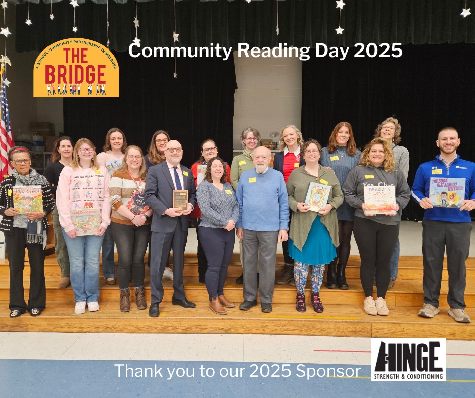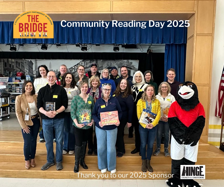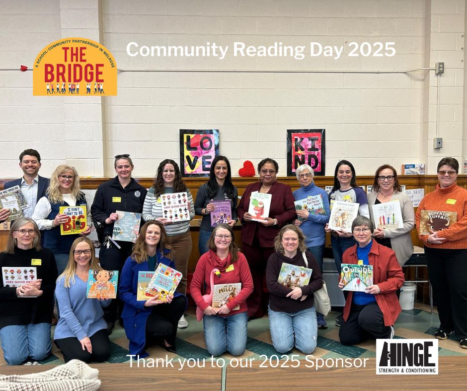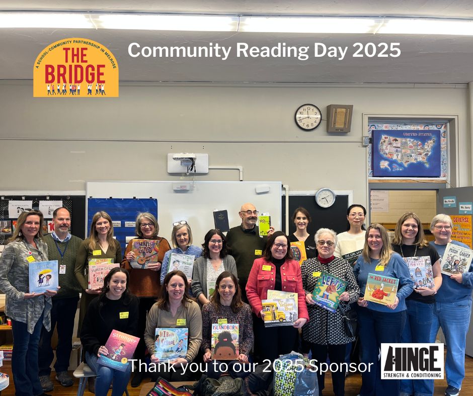 Community Reading Day is organized by The Bridge, a local nonprofit that has worked to manage and place community volunteers in the Melrose Public Schools since it was founded in 1993. Lisa Payne, the Board President of The Bridge, shared, “our goal is to connect community members to the public schools to enrich the lives of students.”