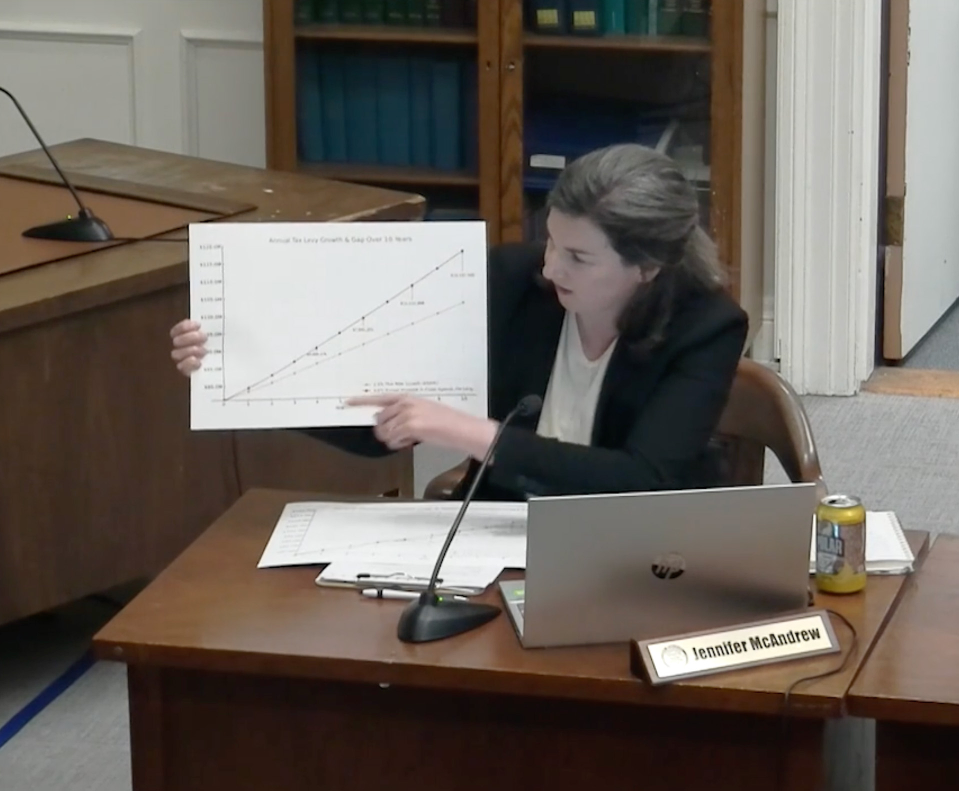 Jen McAndrew shows an example of the gap between the cost of city services and revenue