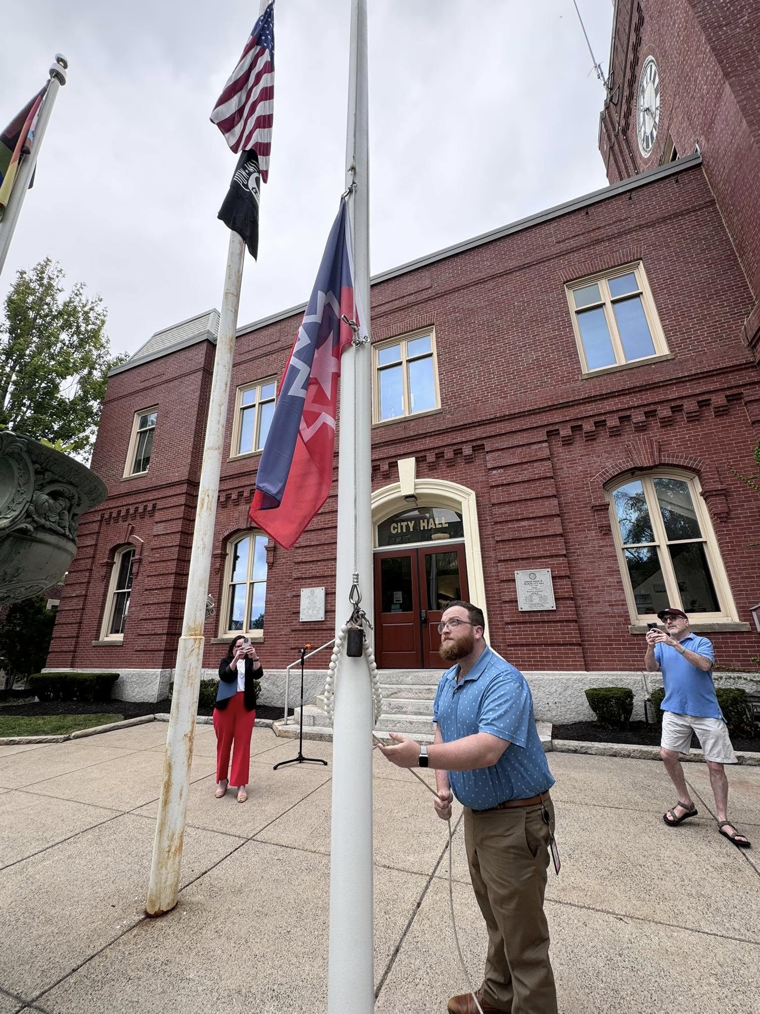 Before the flag was raised, Mayor Jen Grigoraitis read a proclamation that stated, “On this occasion, people of all races, nationalities, and religions join hands to acknowledge the painful history and lasting systemic impact of slavery and racial injustice in the United States and our collective national commitment to the goal of creating a more equal and just society.”