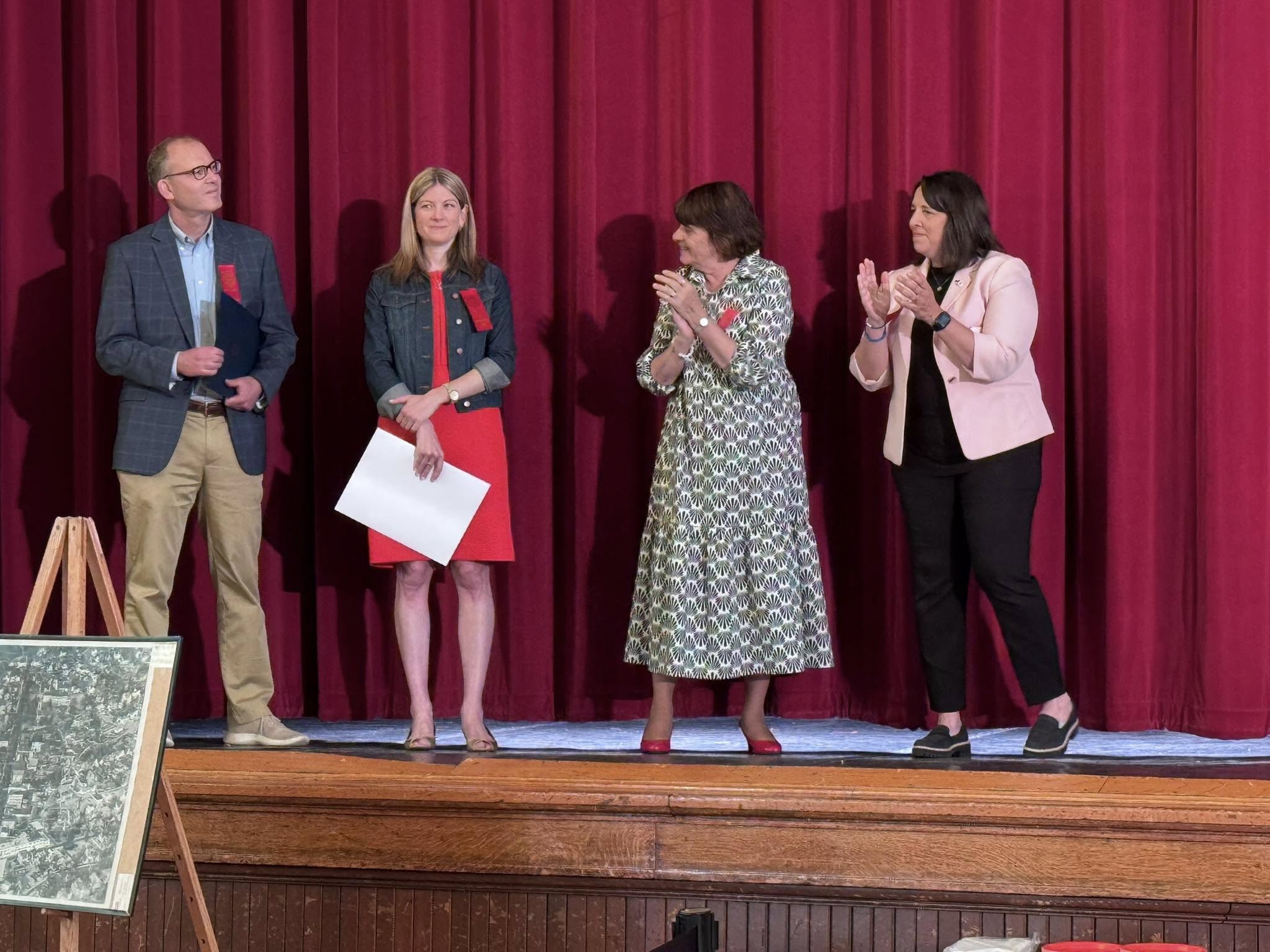 Senator Jason Lewis, left, and Representative Kate Lipper-Garabedian, second from left, at Melrose's 175th birthday celebration this spring