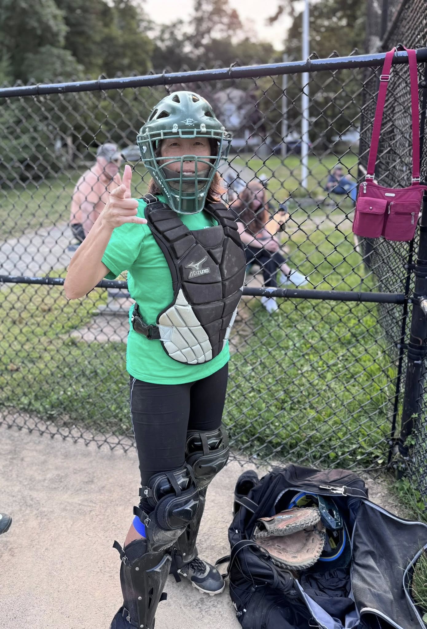 Stephanie Koh, a member of the League’s leadership and the Green team’s catcher, first joined over two decades ago.