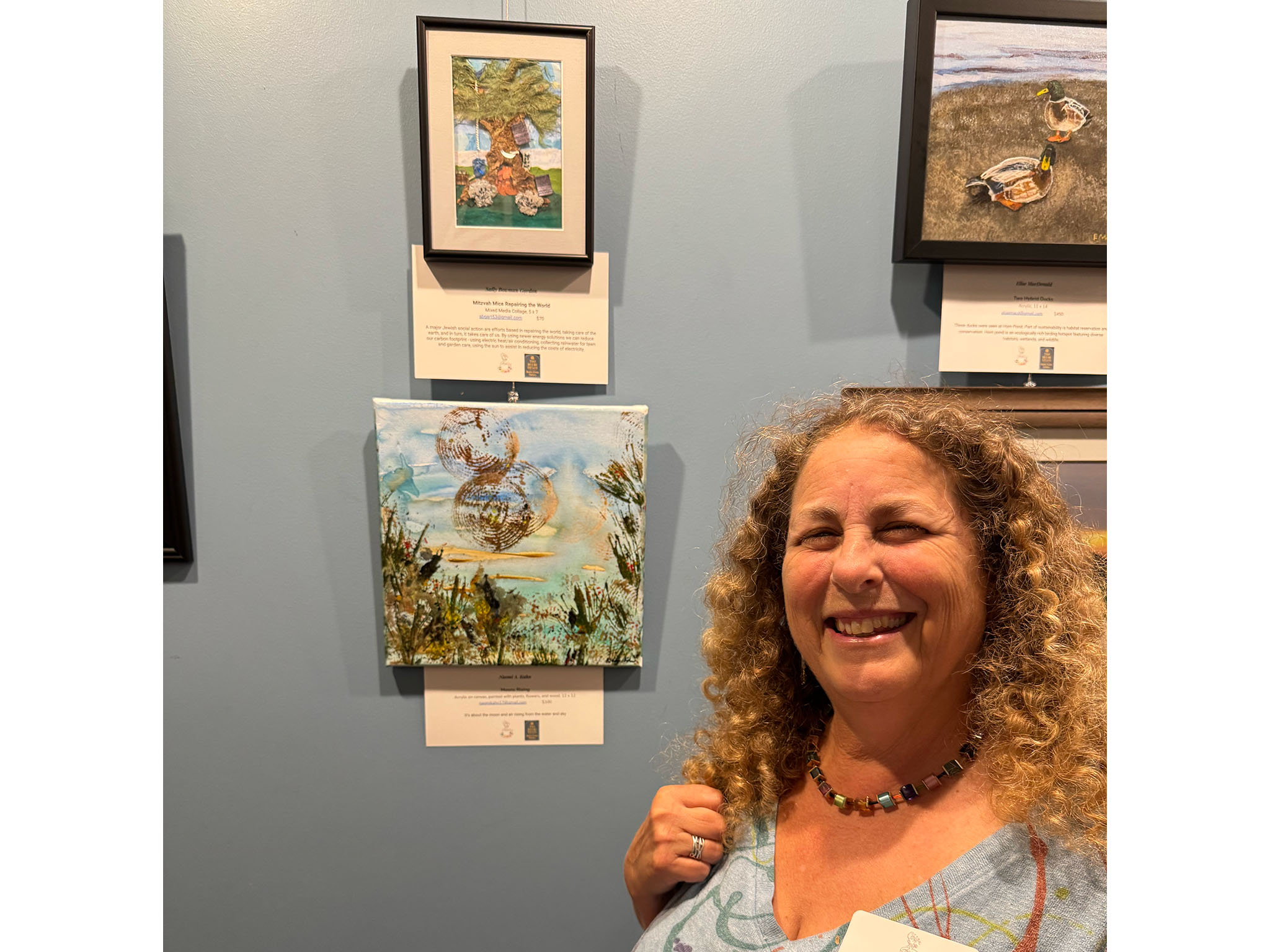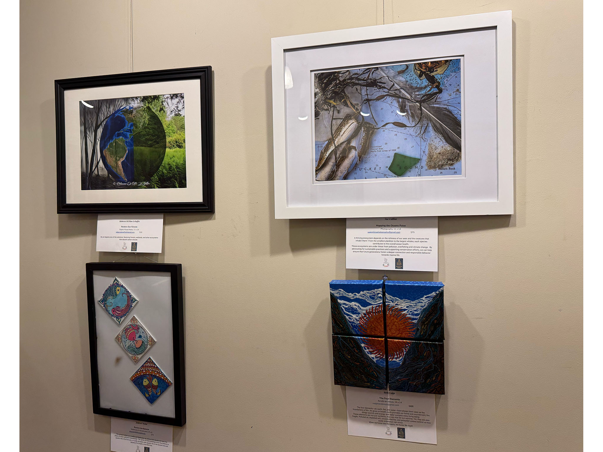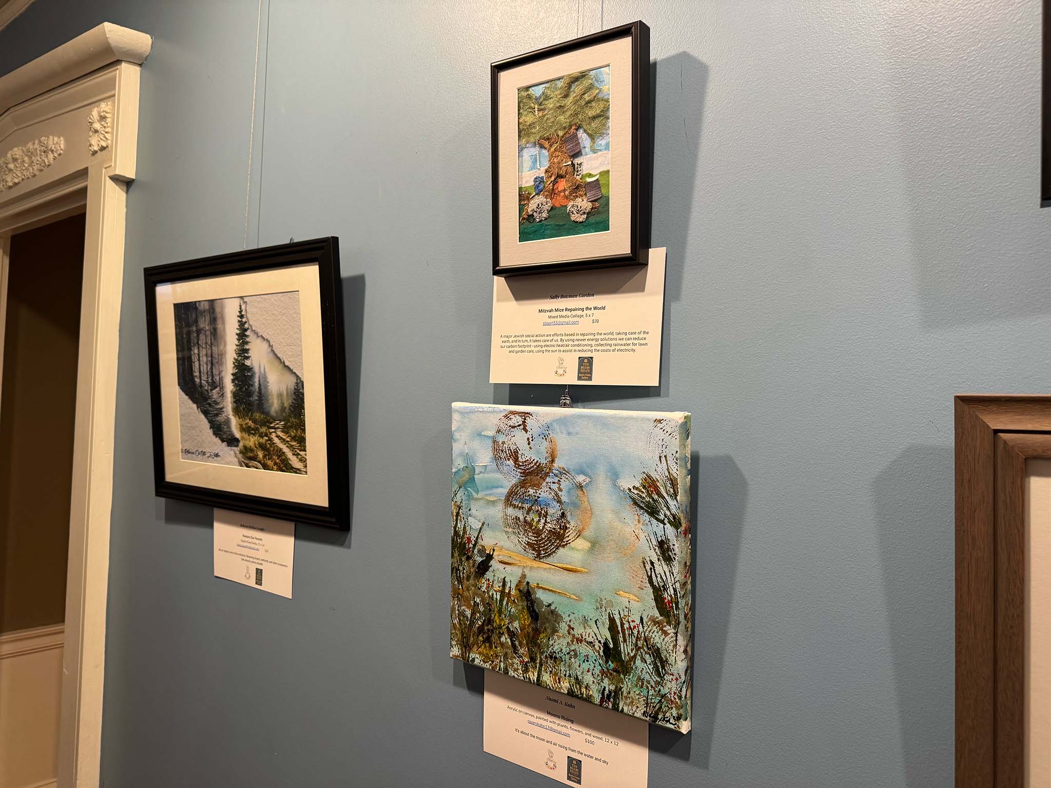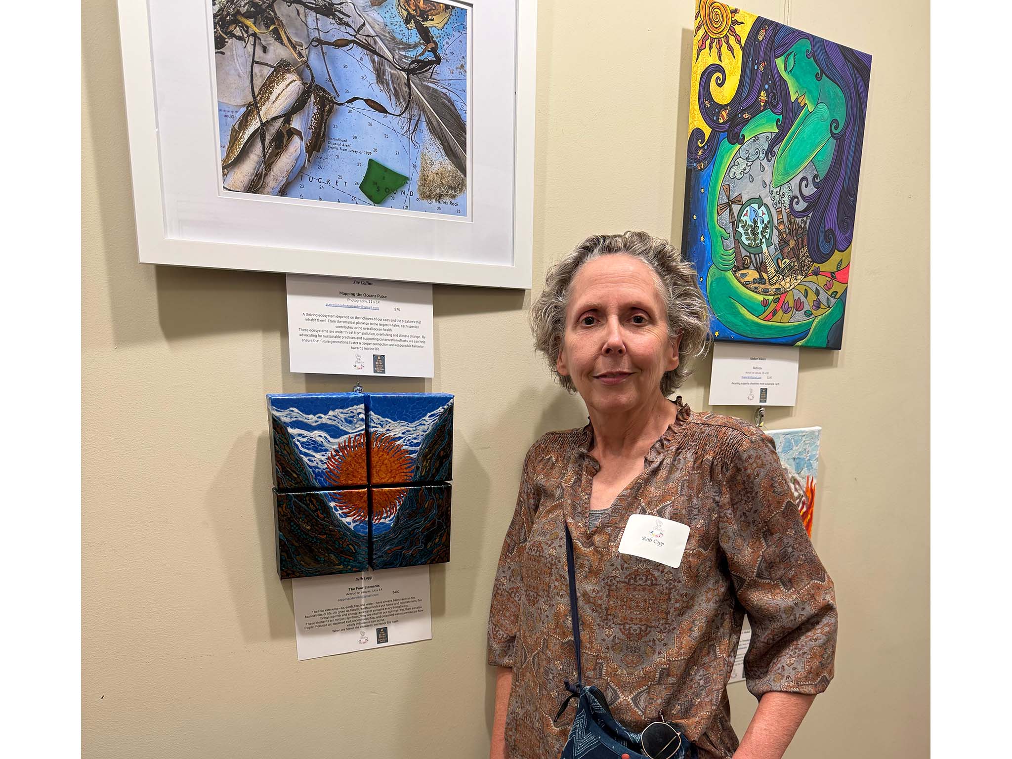 Bowman Gordon, who facilitated a discussion during the show's opening reception on Friday evening, explained that Visions of a Sustainable Future is the third in a series of shows about climate change that the Coffee Shop Artists have presented, starting with a show in response to Malden's Climate Action Plan in March.