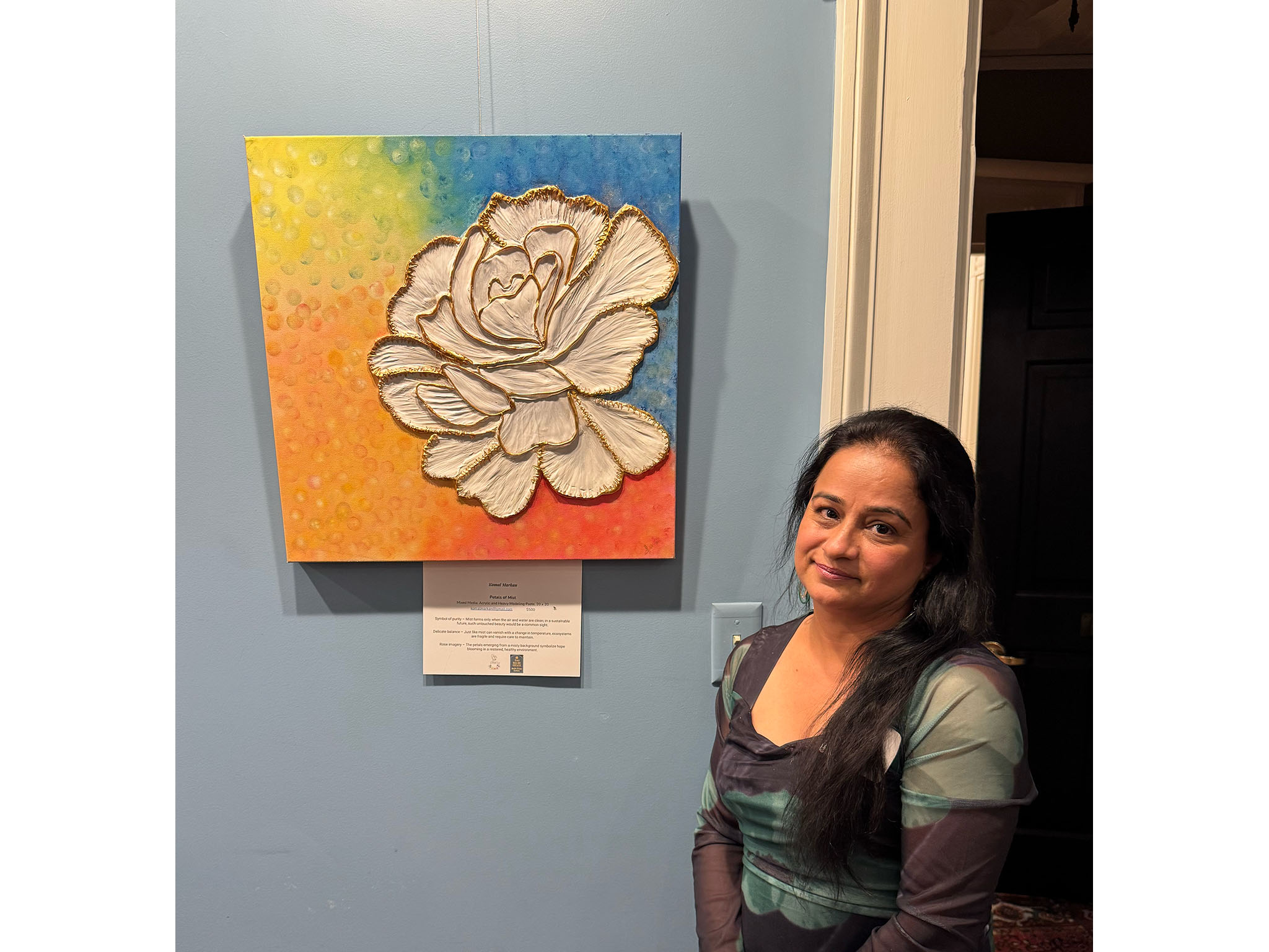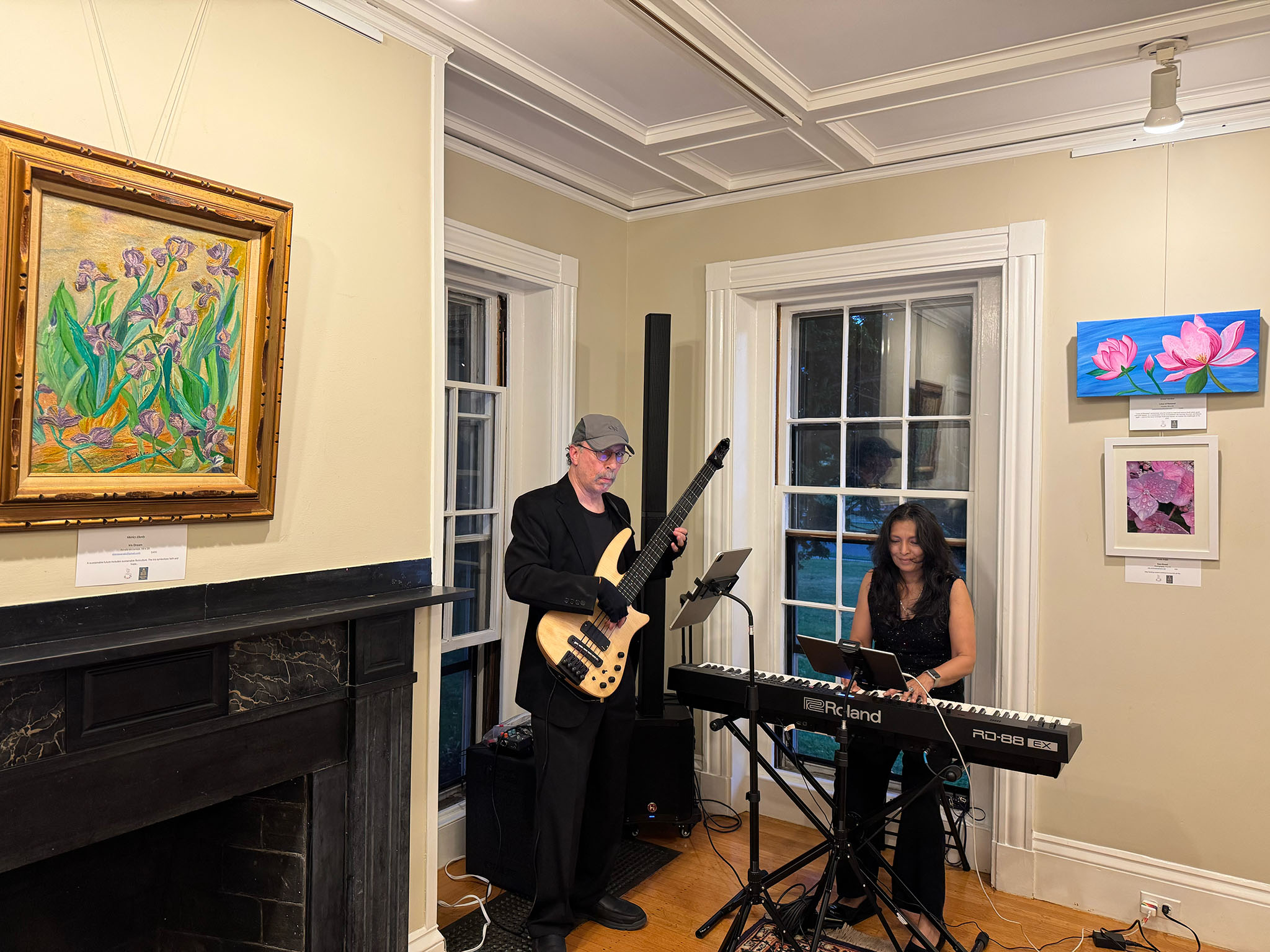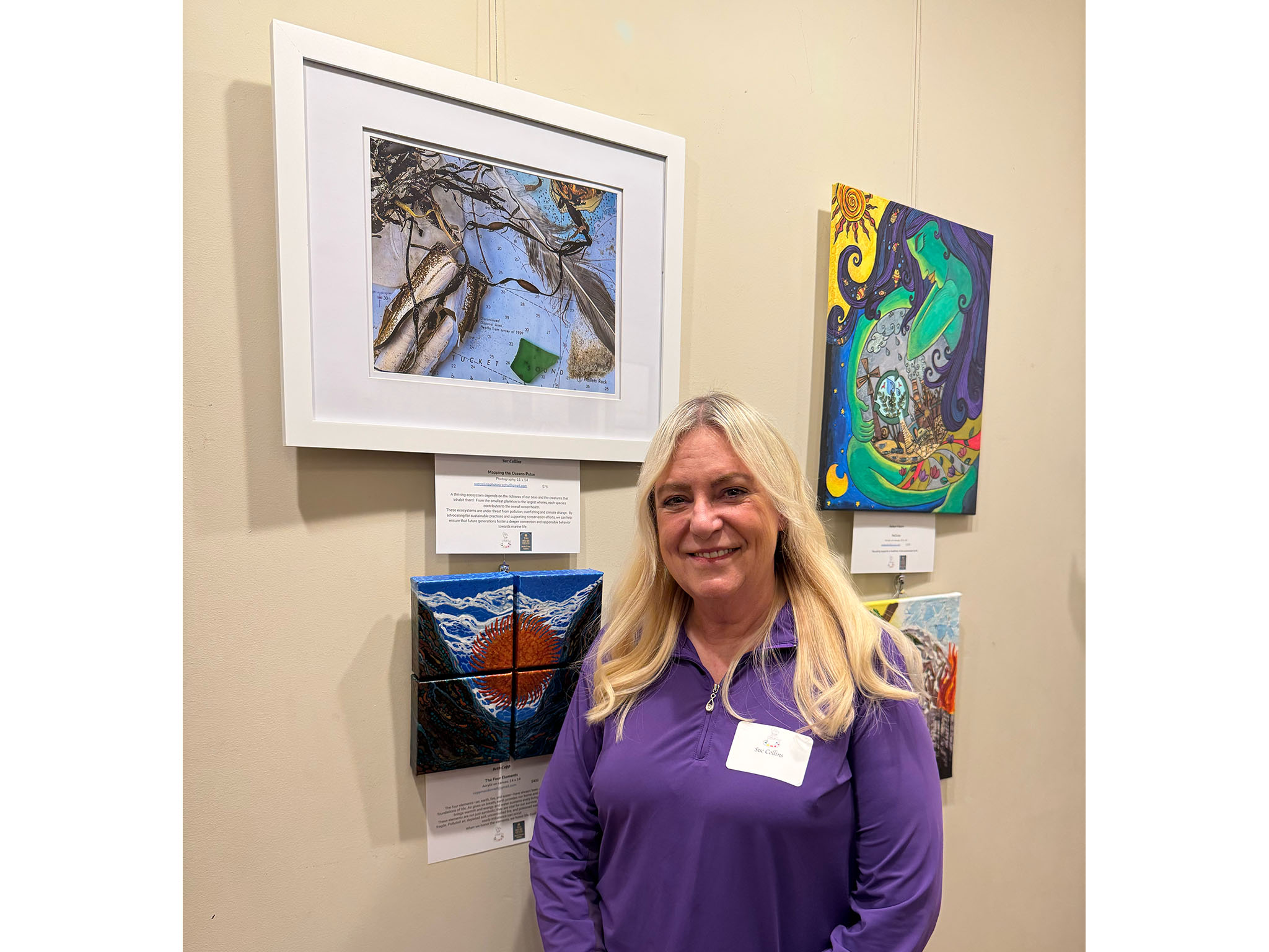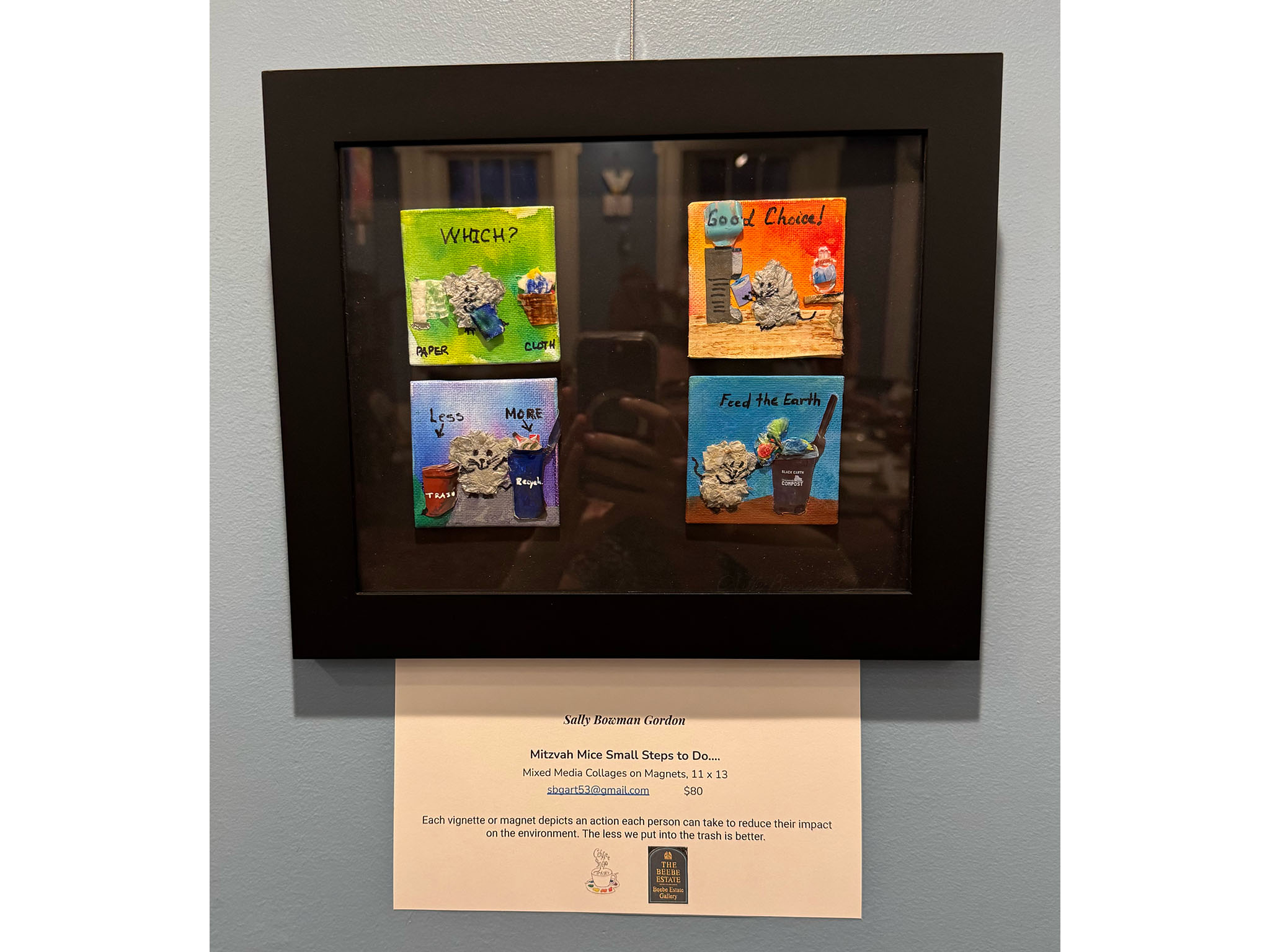Bowman Gordon, who facilitated a discussion during the show's opening reception on Friday evening, explained that Visions of a Sustainable Future is the third in a series of shows about climate change that the Coffee Shop Artists have presented, starting with a show in response to Malden's Climate Action Plan in March.