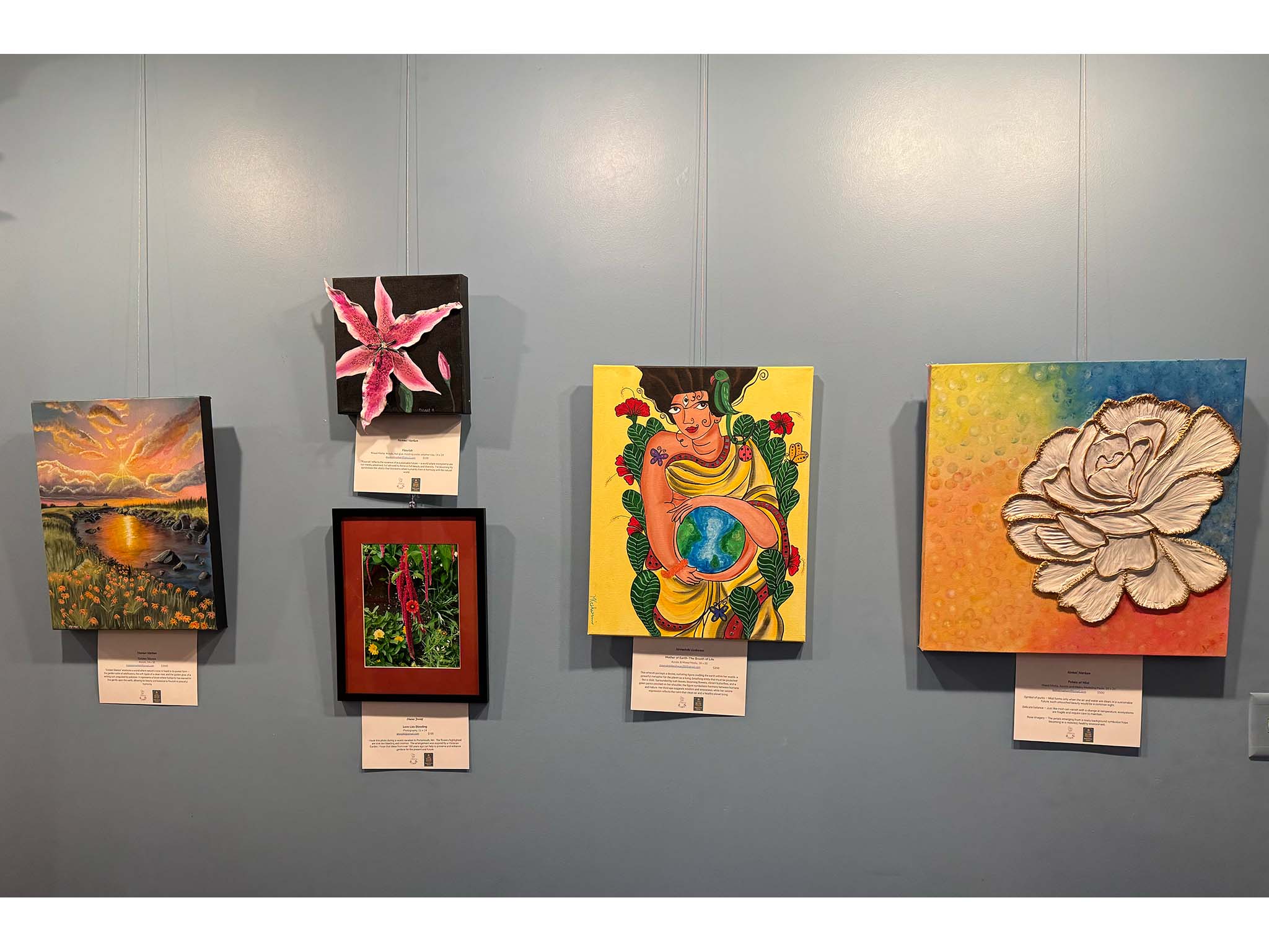 Bowman Gordon noted that the artists responded to the show's theme in different ways, with some images suggesting ways audience members could be more sustainable in their daily lives - such as riding a bike instead of driving - and others showing what's at stake, with images of aspects of nature that could be at risk due to climate change.