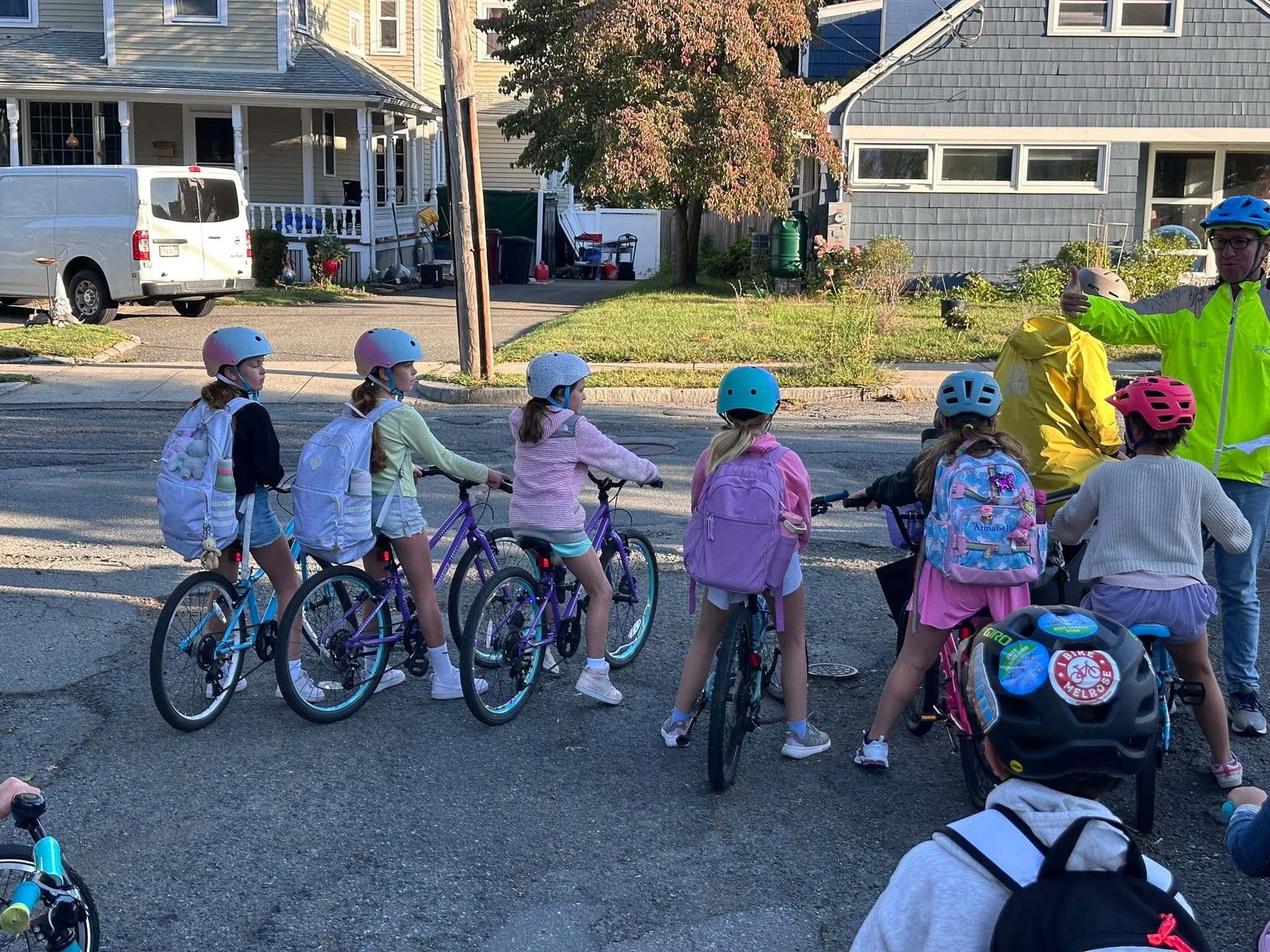 While the bike bus organizers request that children in second grade and below have a parent escort, parents of older children may have different comfort levels starting out. “Early on, we had some parents who were subtly following along with us, walking their dog,” reflected Conway, “and that’s fine! Others might stay in the background, and check in with their kid once they get to school.”