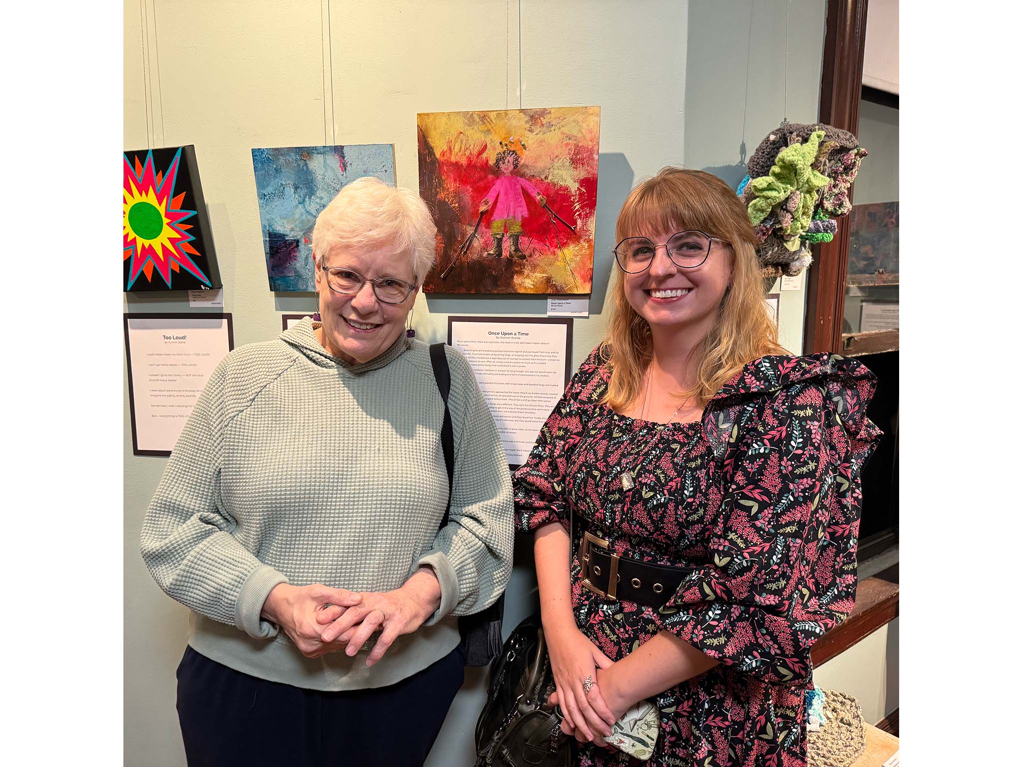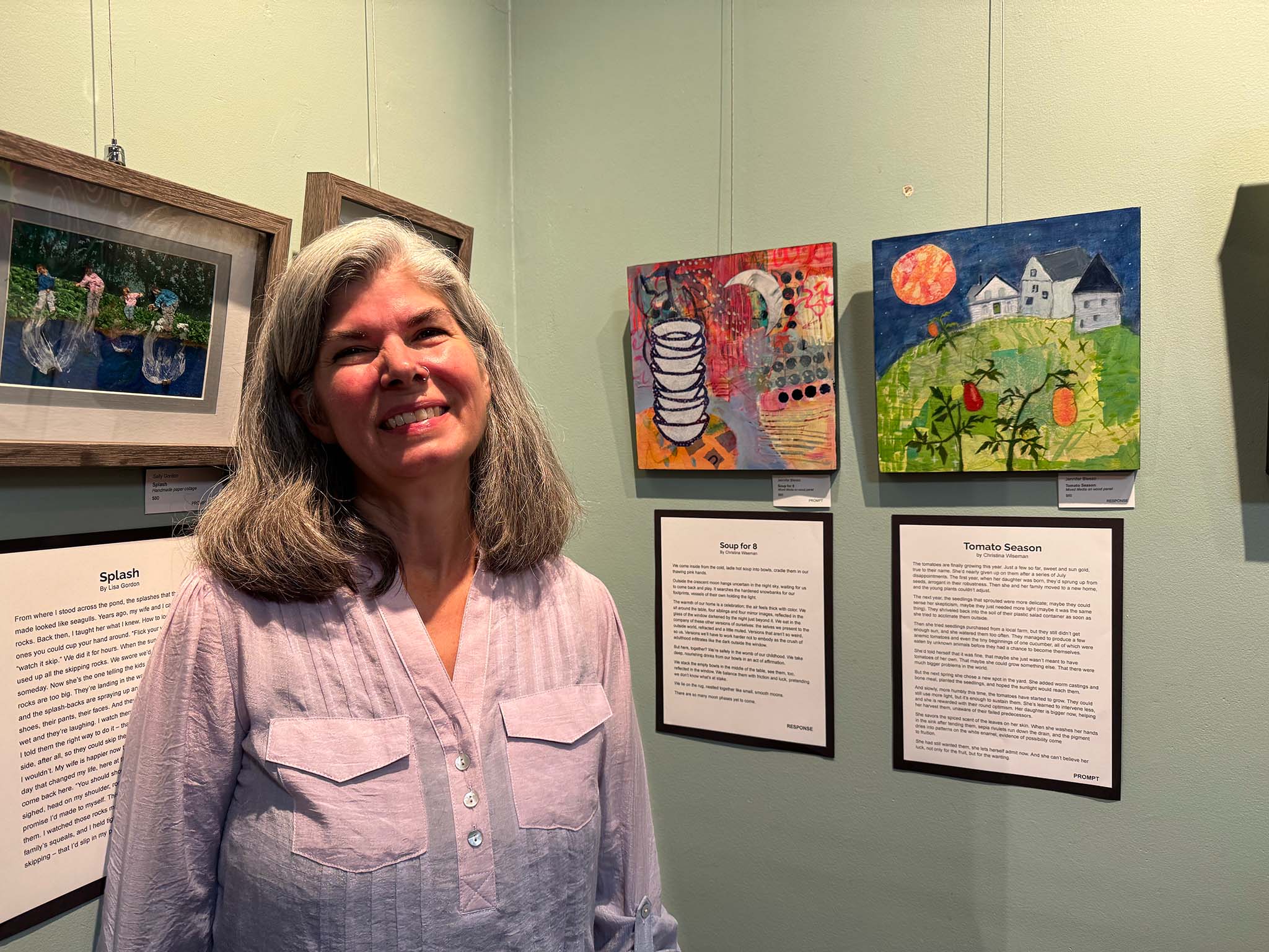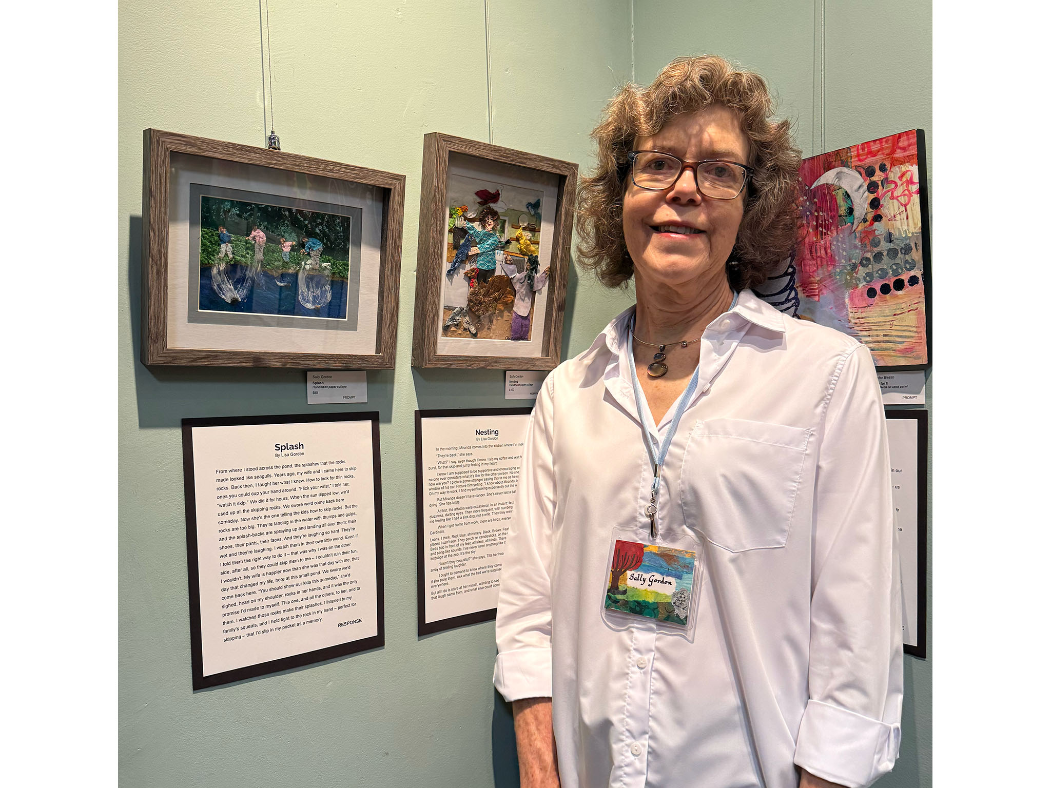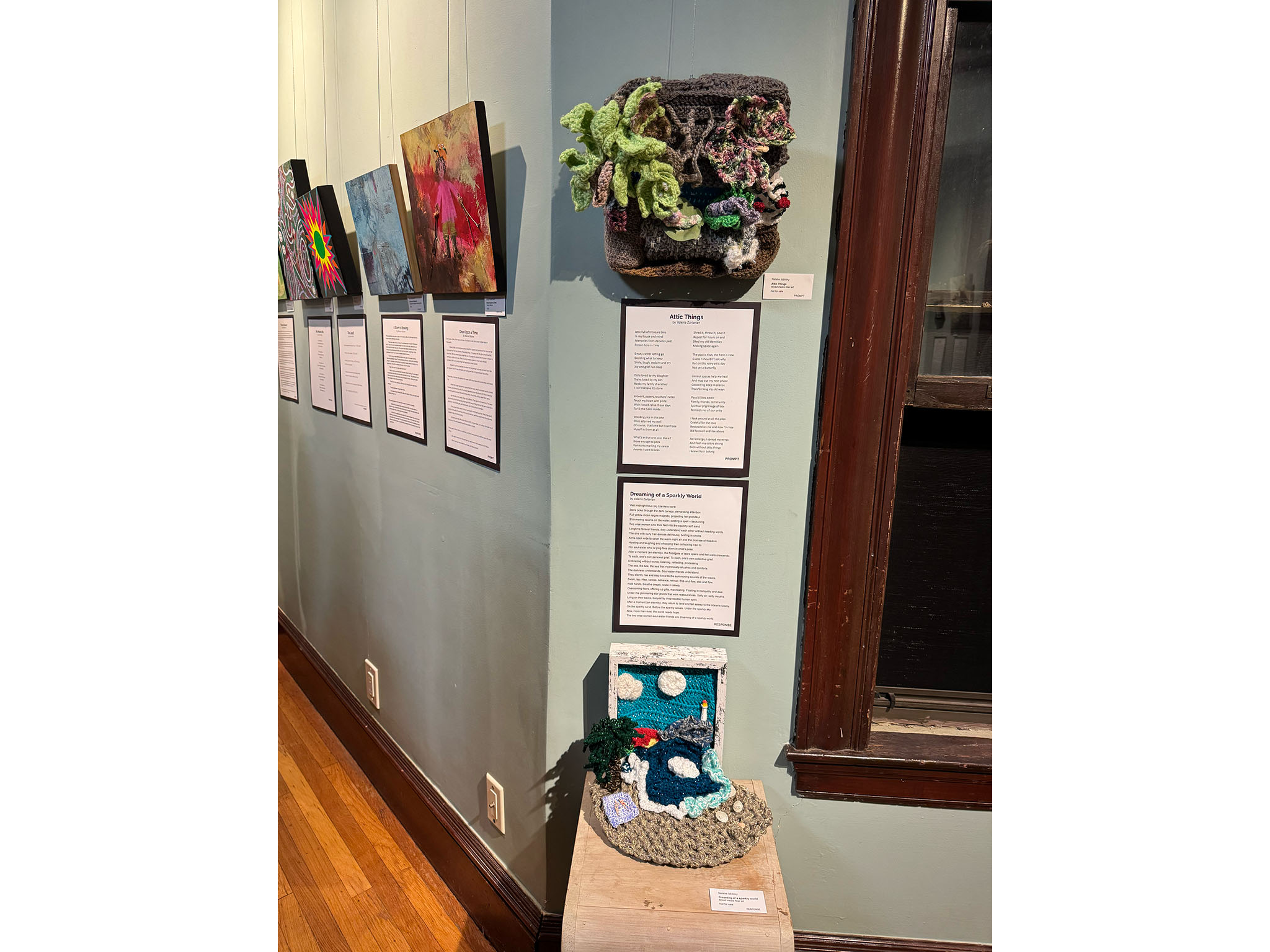 The exhibition shows off a range of formats for both writing and art. Writers created poems and short stories in all genres - fantasy, realistic, children’s stories. Many artists’ signature styles were on display, too - Garin Boyd’s charcoal drawings, Kerry Pegoraro’s colorful patterns, Sally Gordon’s paper sculptures.