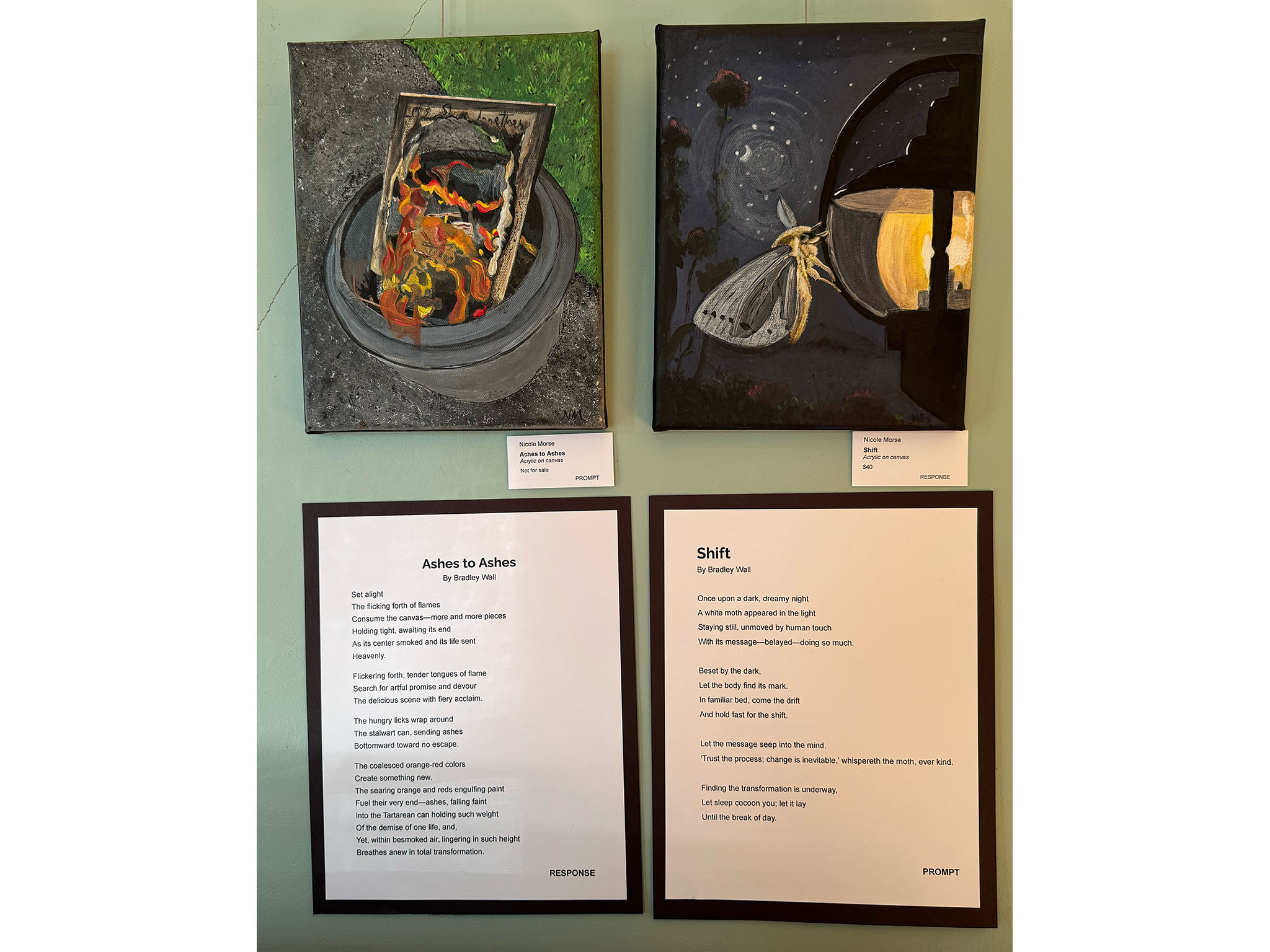 Within each artist-writer team, the artist and writer each create a “Prompt” piece, which they then share with their partner, who creates a “Response” piece with the same title and which is inspired in some way by the first piece.