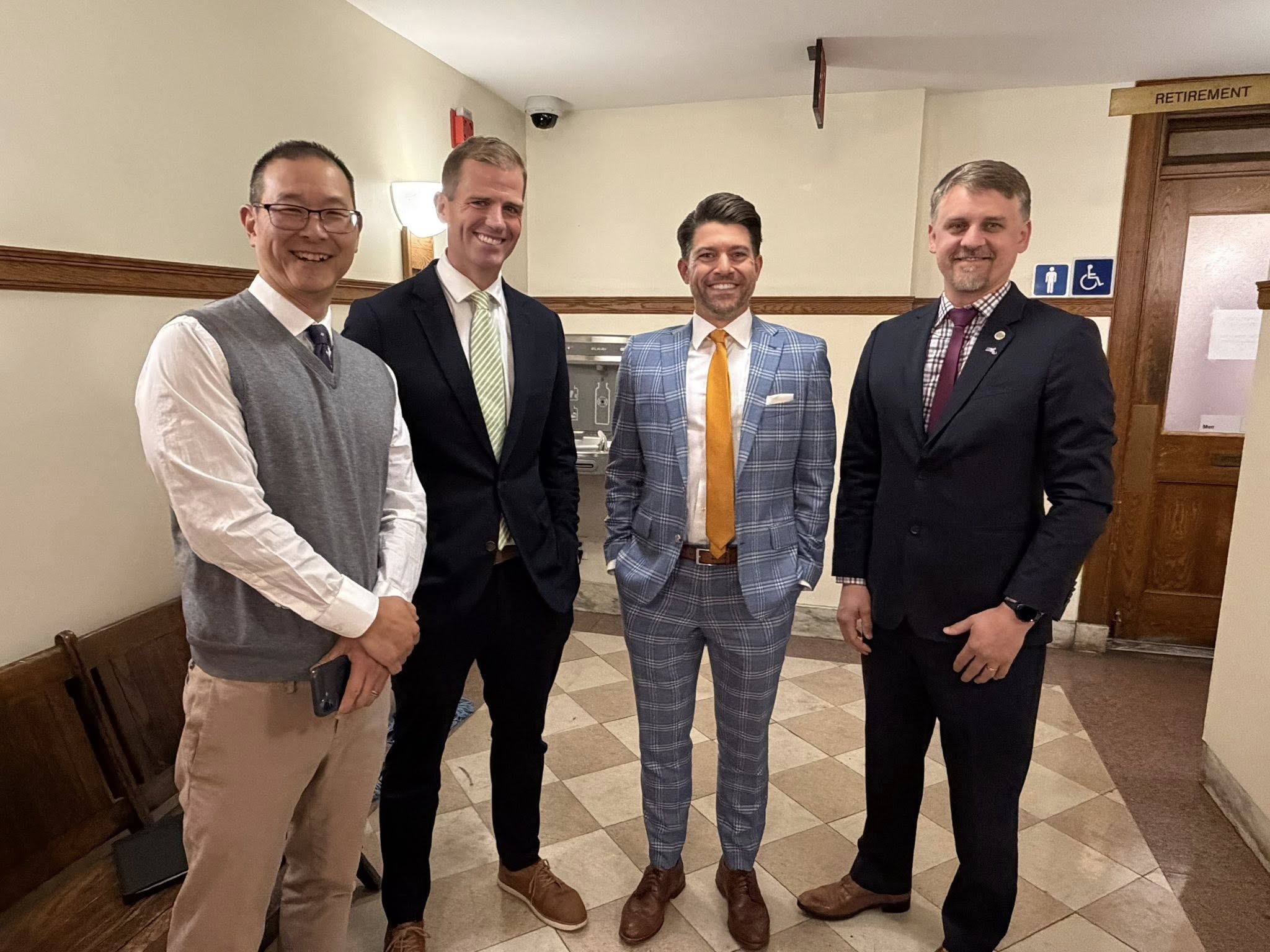 Left to right: Ward 3 candidates Christopher Park and Robb Stewart, and Ward 7 candidates Alex Rodriguez and Devin Romanul