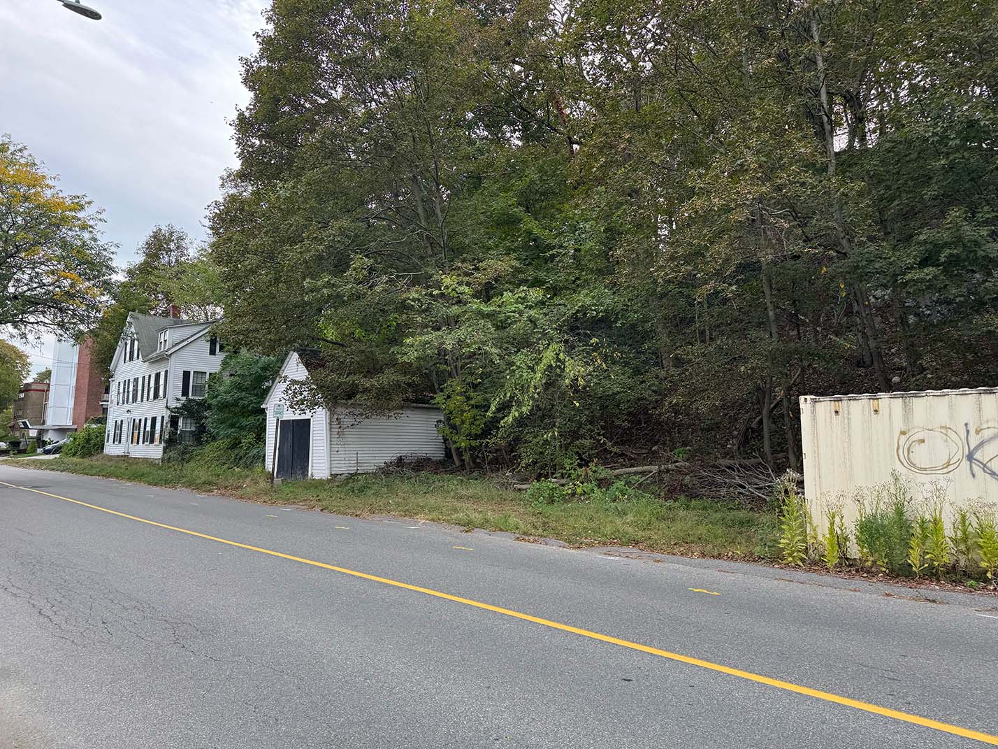 The Summit Ave project is planned at the top of a very steep, narrow road in the hills above Franklin Street. Currently, the site is mostly undeveloped land with two single-family houses on it. It abuts conservation land in Melrose and wooded, city-owned land in Wakefield. While the site is not far from the Melrose Highlands train station, steep hills do not make the site very pedestrian-friendly.