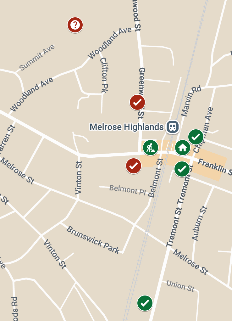 Seven multi-unit projects, including the Greenwood Street project, have been approved in recent years within a half-mile of the Melrose Highlands train station:
