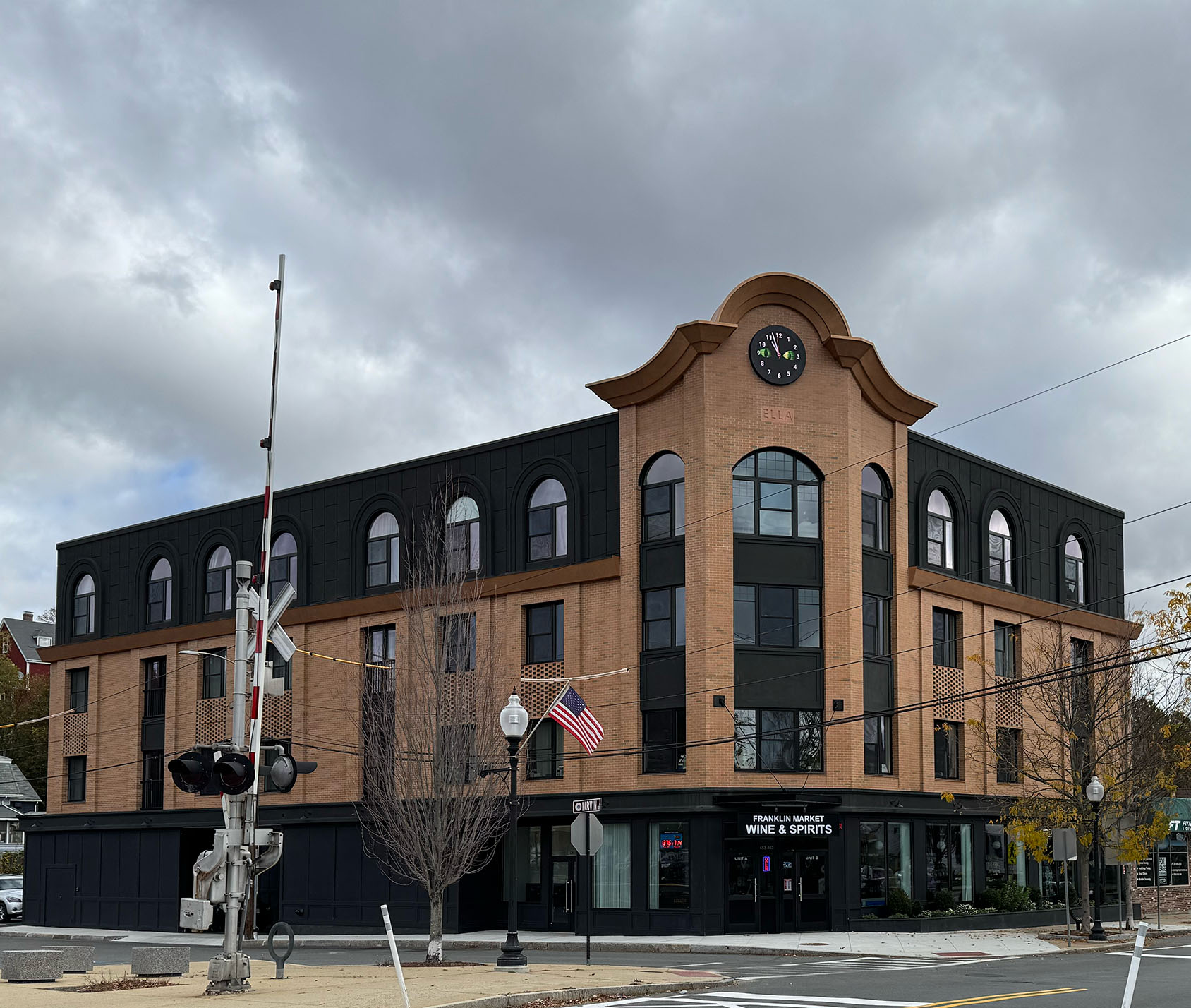 - The four-story “Ella” building at 453-463 Franklin Street was completed earlier this year with 21 units and 13 parking spaces. Franklin Market recently reopened on the first floor. The building has generally been well-received by the public in terms of its design and how it fits in with the neighborhood (with the exception of the occasional negative comment about its animated clock or its large sign).