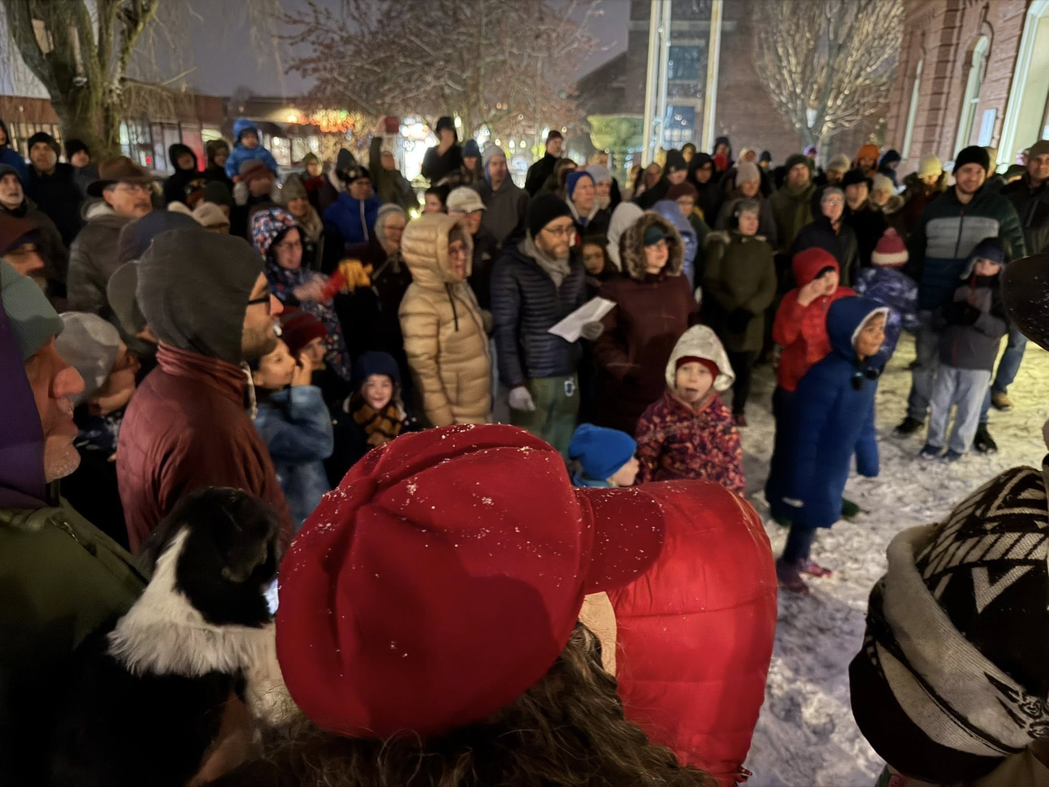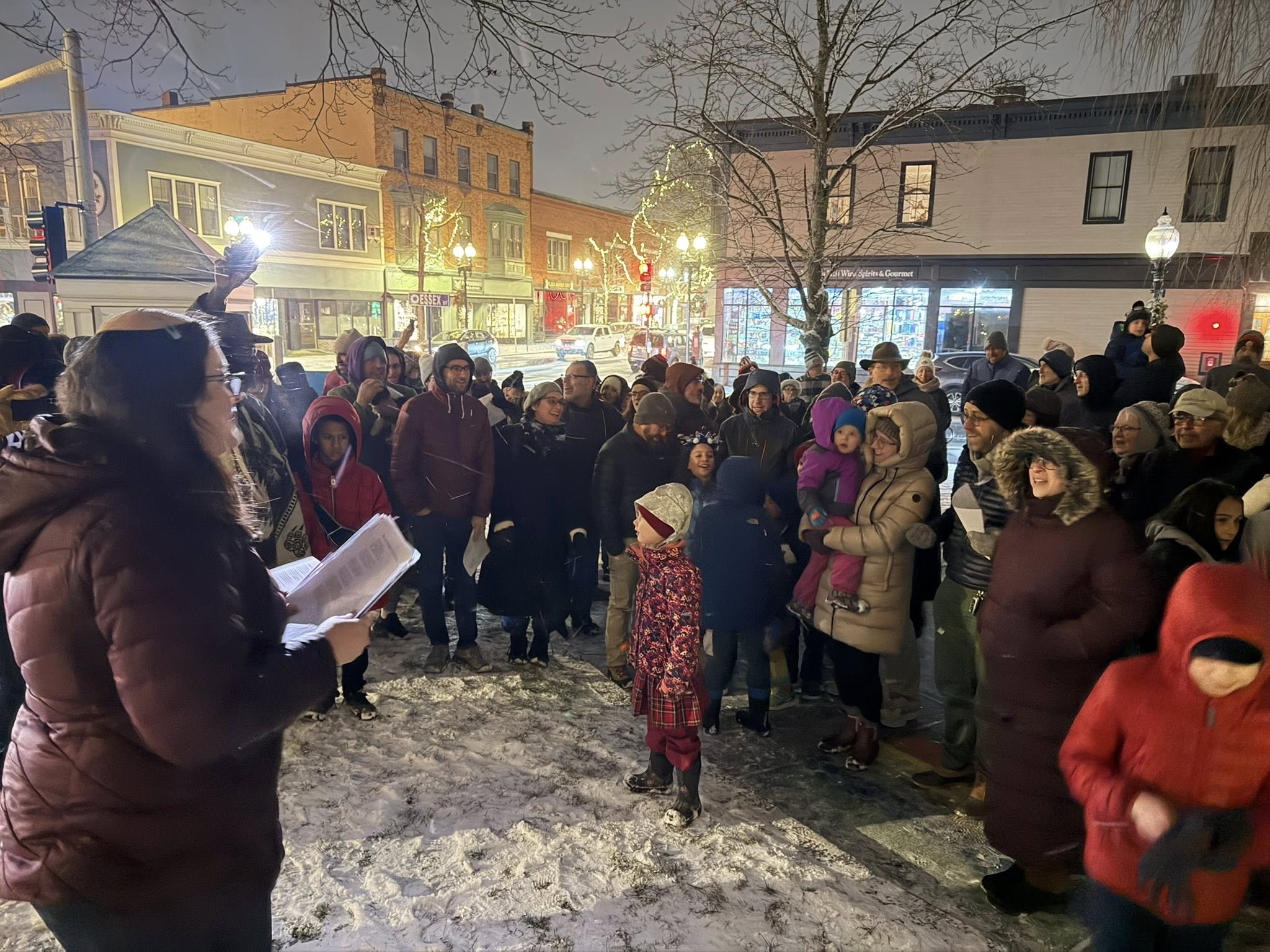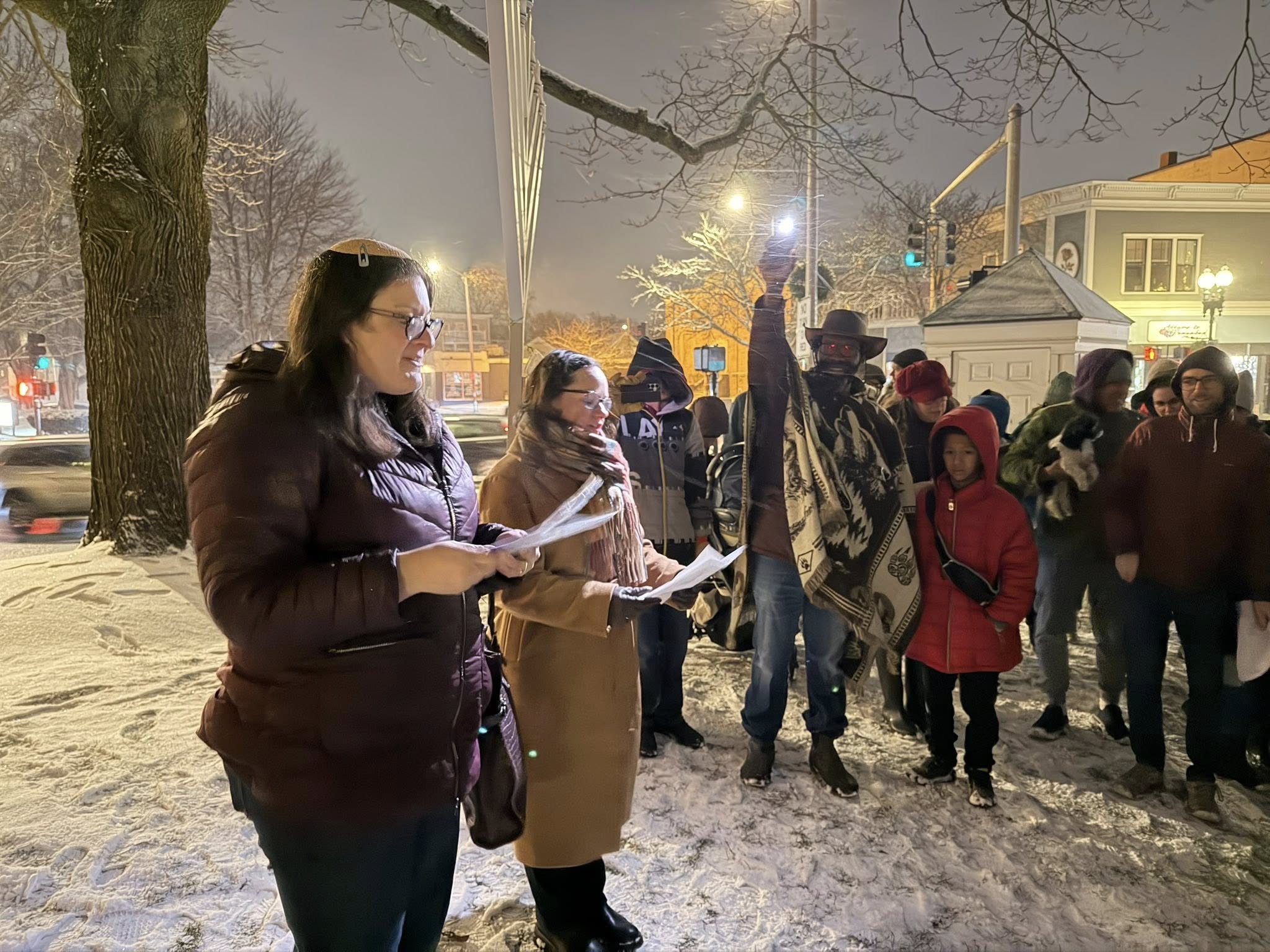 On Sunday evening, the first night of the Jewish celebration of Hanukkah, dozens of Melrosians gathered in front of City Hall to mark the occasion and support our Jewish neighbors.