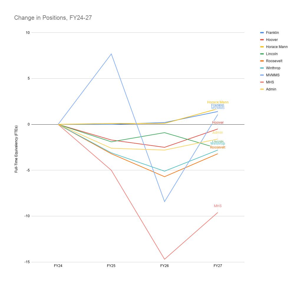 - One teacher position at each of the six elementary schools (Franklin, Hoover, Horace Mann, Lincoln, Roosevelt, and Winthrop);