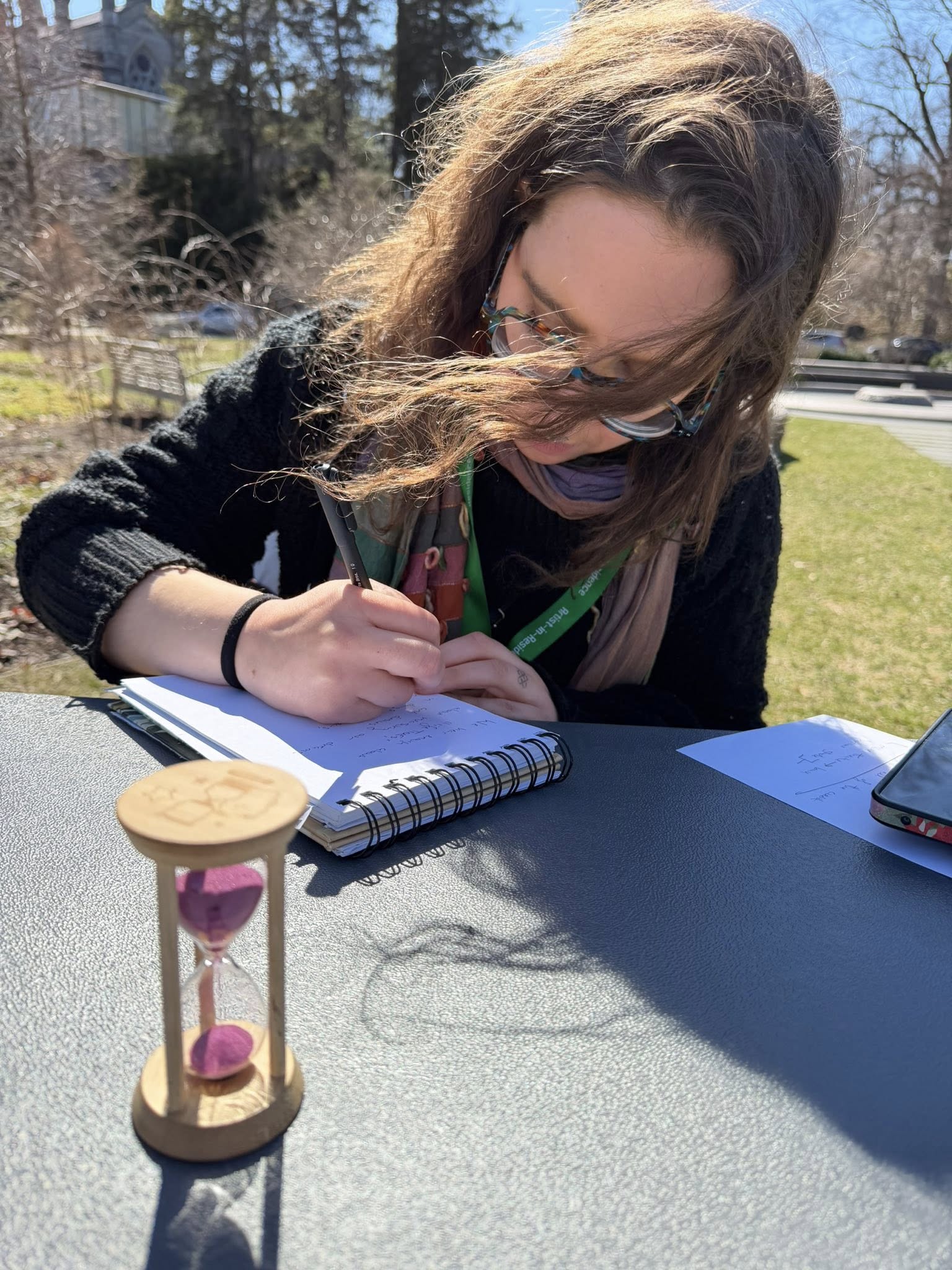 Most recently, she completed a residency at Mount Auburn Cemetery, where her work took on a particularly meaningful dimension. Sitting with visitors, Emily would listen closely, asking thoughtful, probing questions — and then distill their stories into a poem they could take with them.