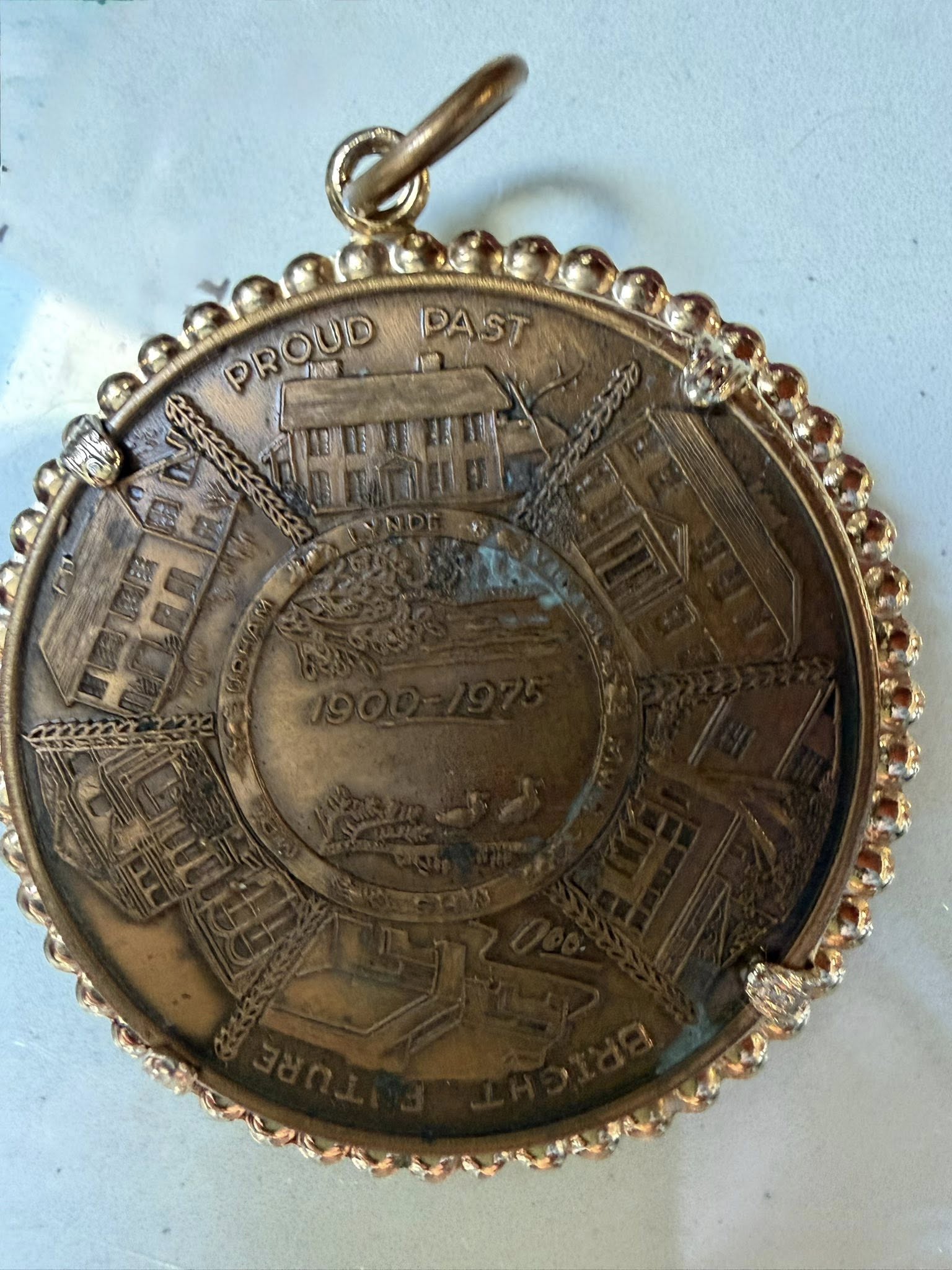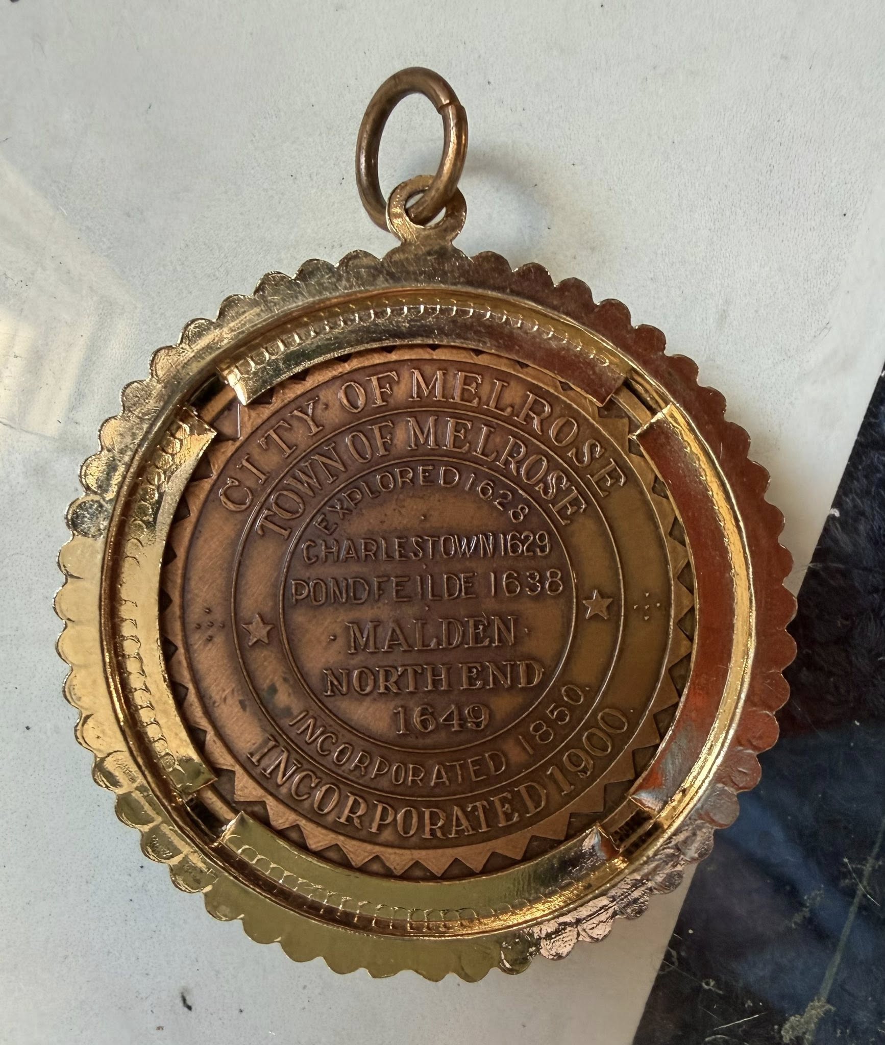 Her design became the official Hamilton Mint silver and bronze medallion — a piece of art that told the story of a city. At its center? The iconic swans on Ell Pond. Surrounding them are the landmarks that define Melrose: the Lynde, Upham, and Vinton Houses, the hospital, the library, and the high school. Encircling it all were the words: “Proud Past — Bright Future 1900–1975.” Flip it over, and you’ll find the city seal — a perfect balance of history and identity.