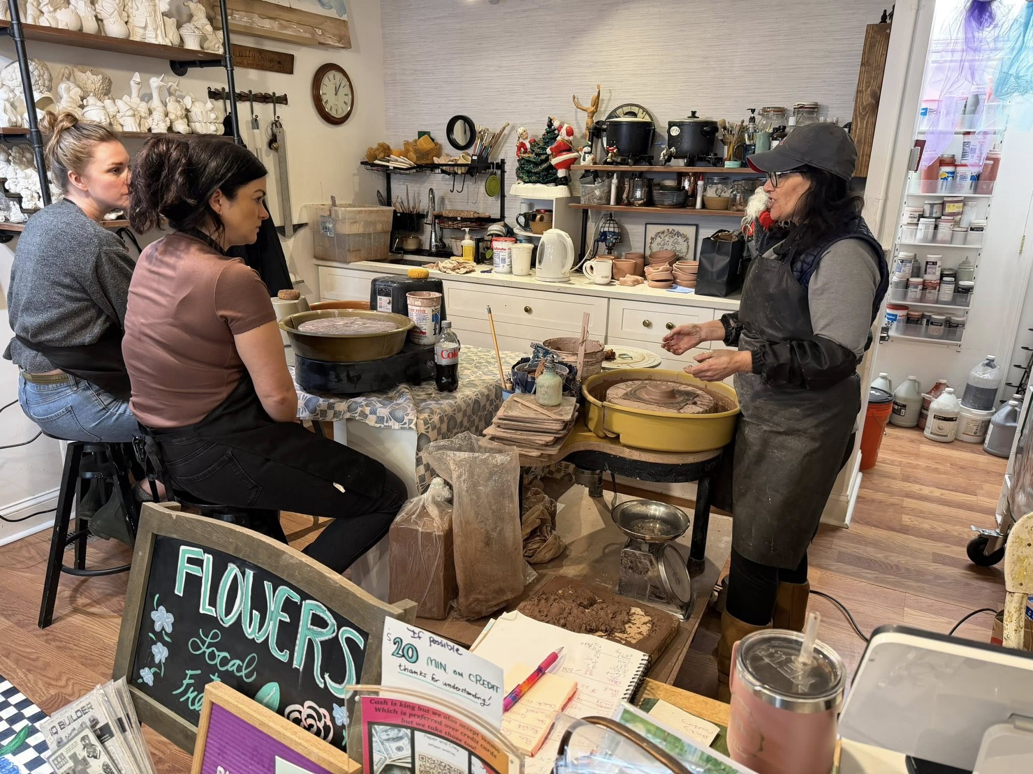 Another milestone: Lesley has moved her pottery studio out of her home and into the shop, where she now offers pottery classes, inviting the community to create alongside her.